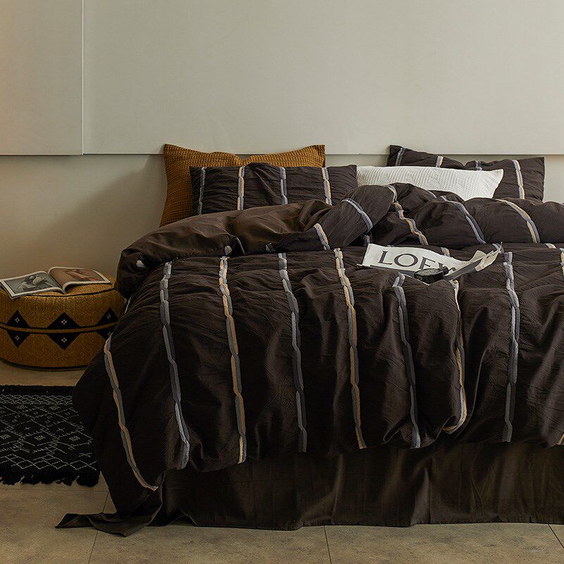 北欧全棉水洗棉床上四件套2024新款男生高级感纯棉床单被套春秋款