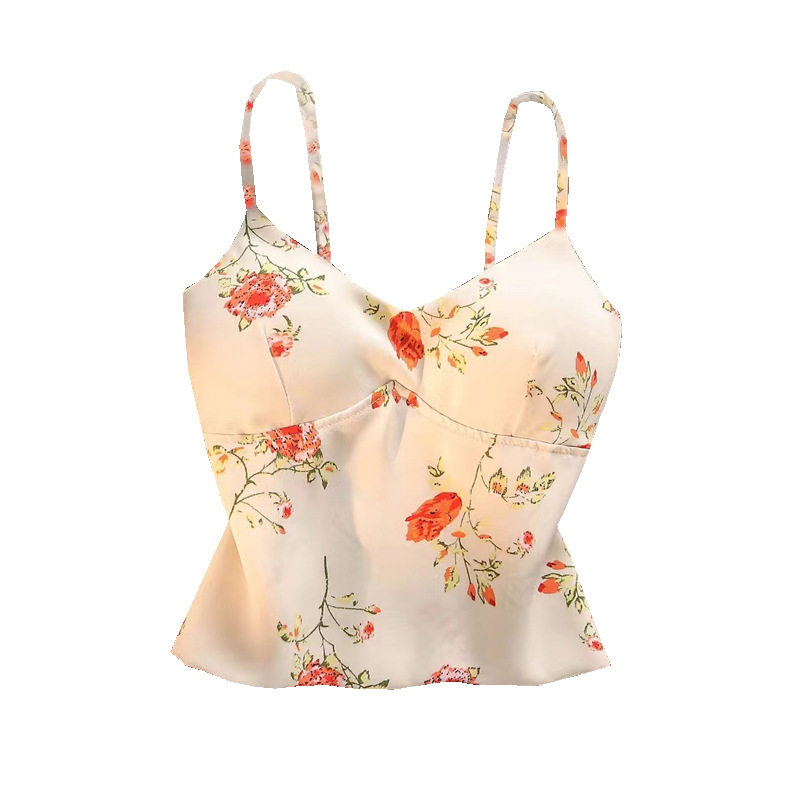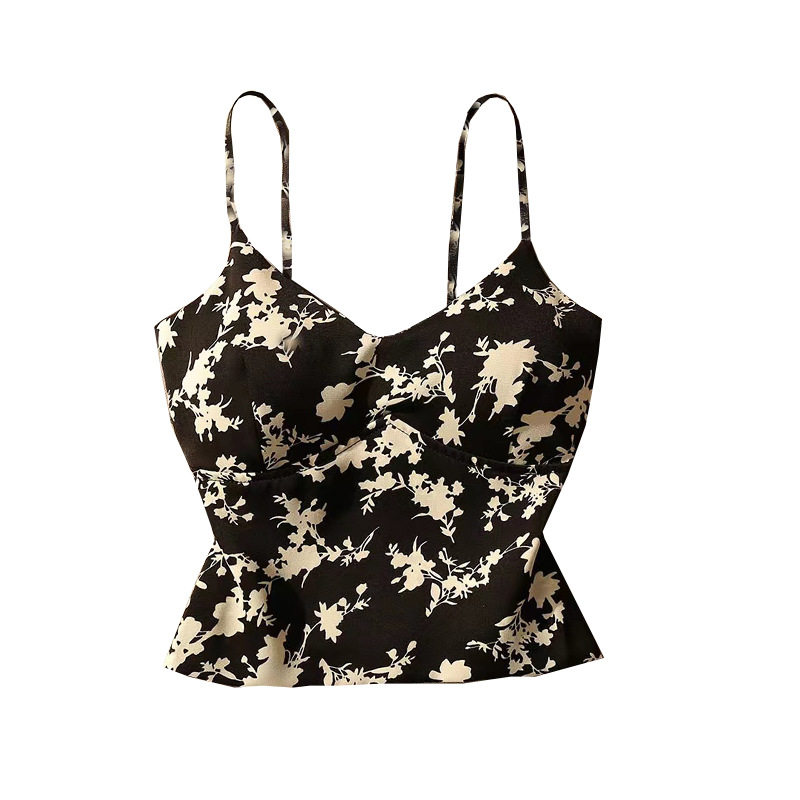 拿铁女孩运动健身瑜伽背心女含胸垫法式复古印花速干裹胸吊带上衣