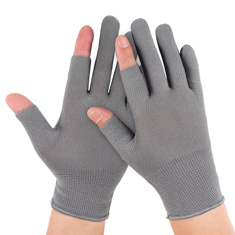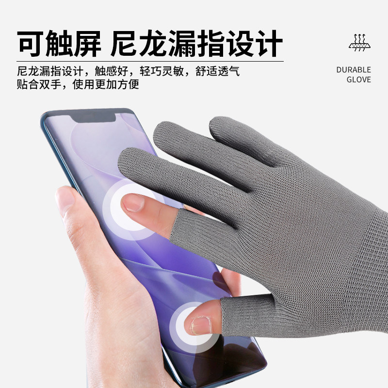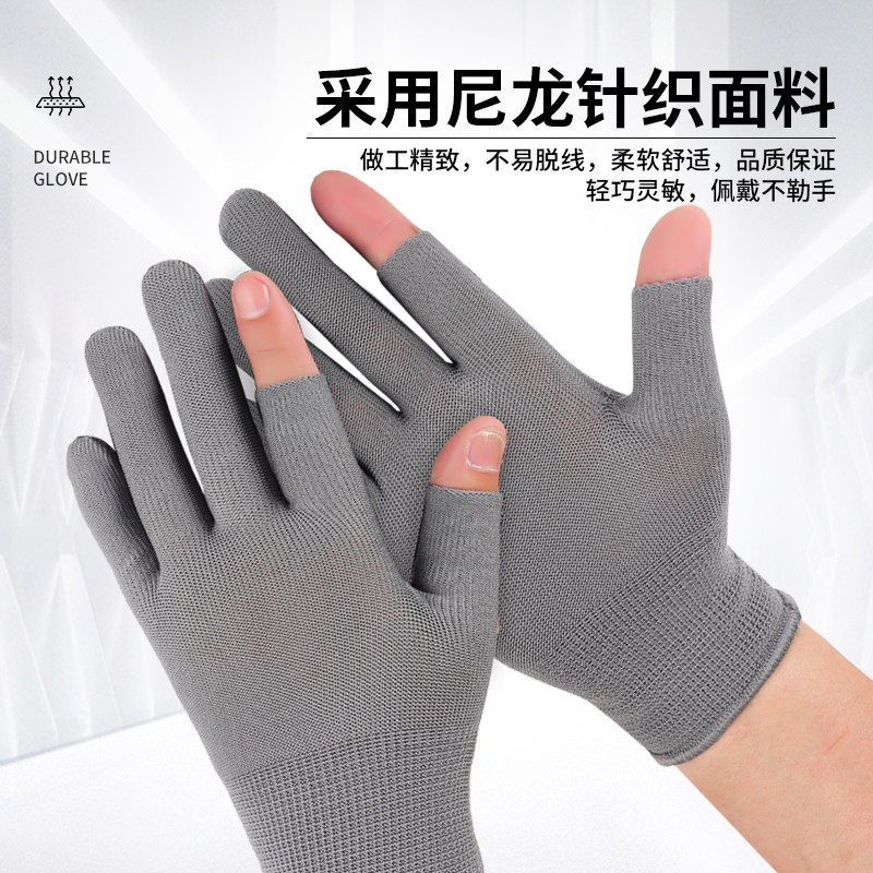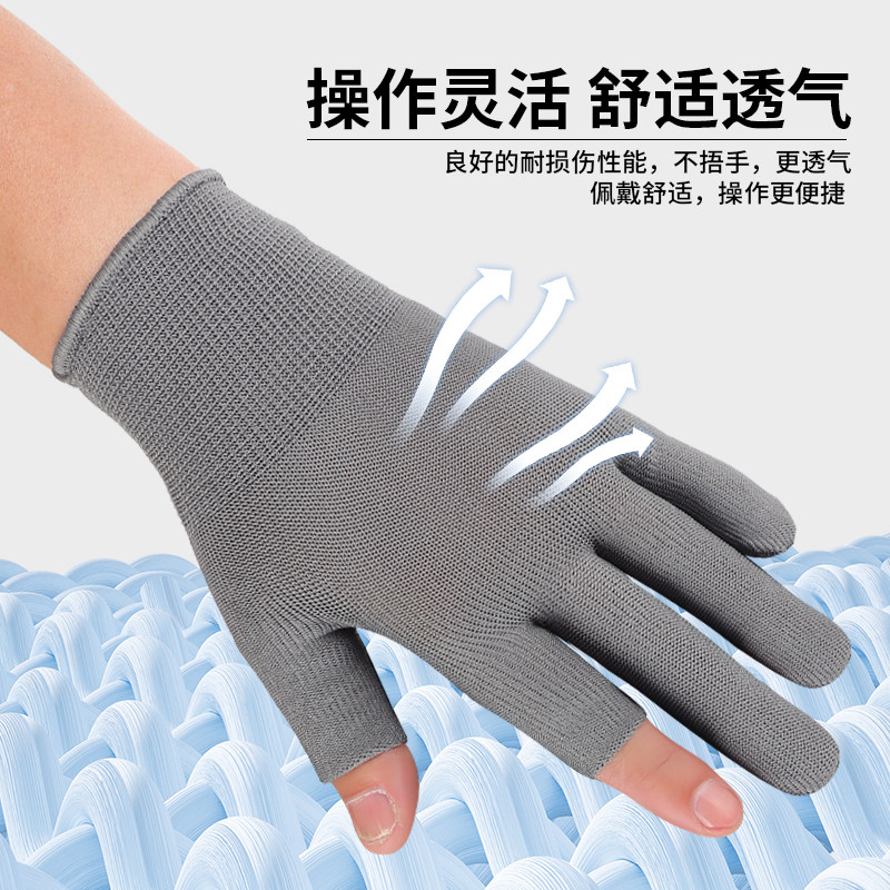 尼龙手套漏指夏季薄款透气劳保耐磨工作防滑干活打包分拣采茶骑行