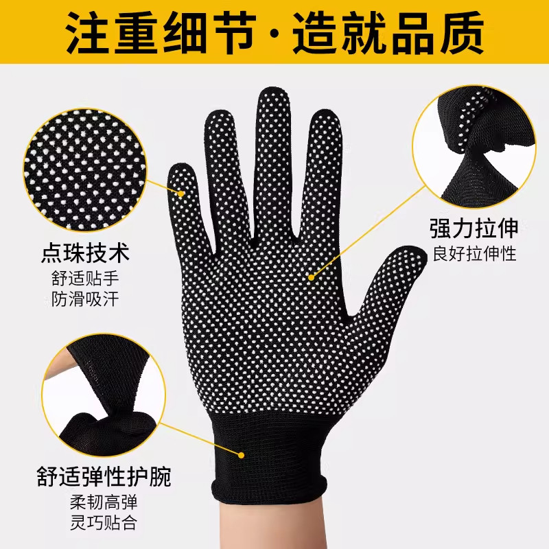 手套劳保耐磨工作防滑防晒尼龙薄款夏季干活透气点胶户外男女电工