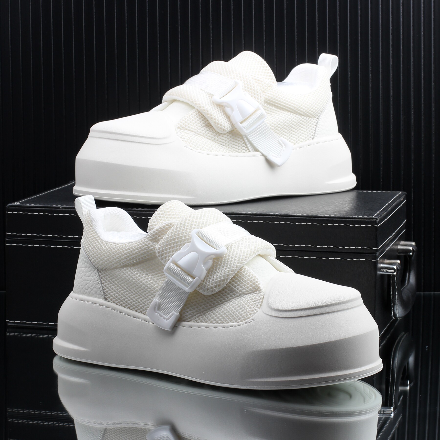 2026夏季新款白色搭扣休闲板鞋男款增高百搭潮牌高级感透气小白鞋