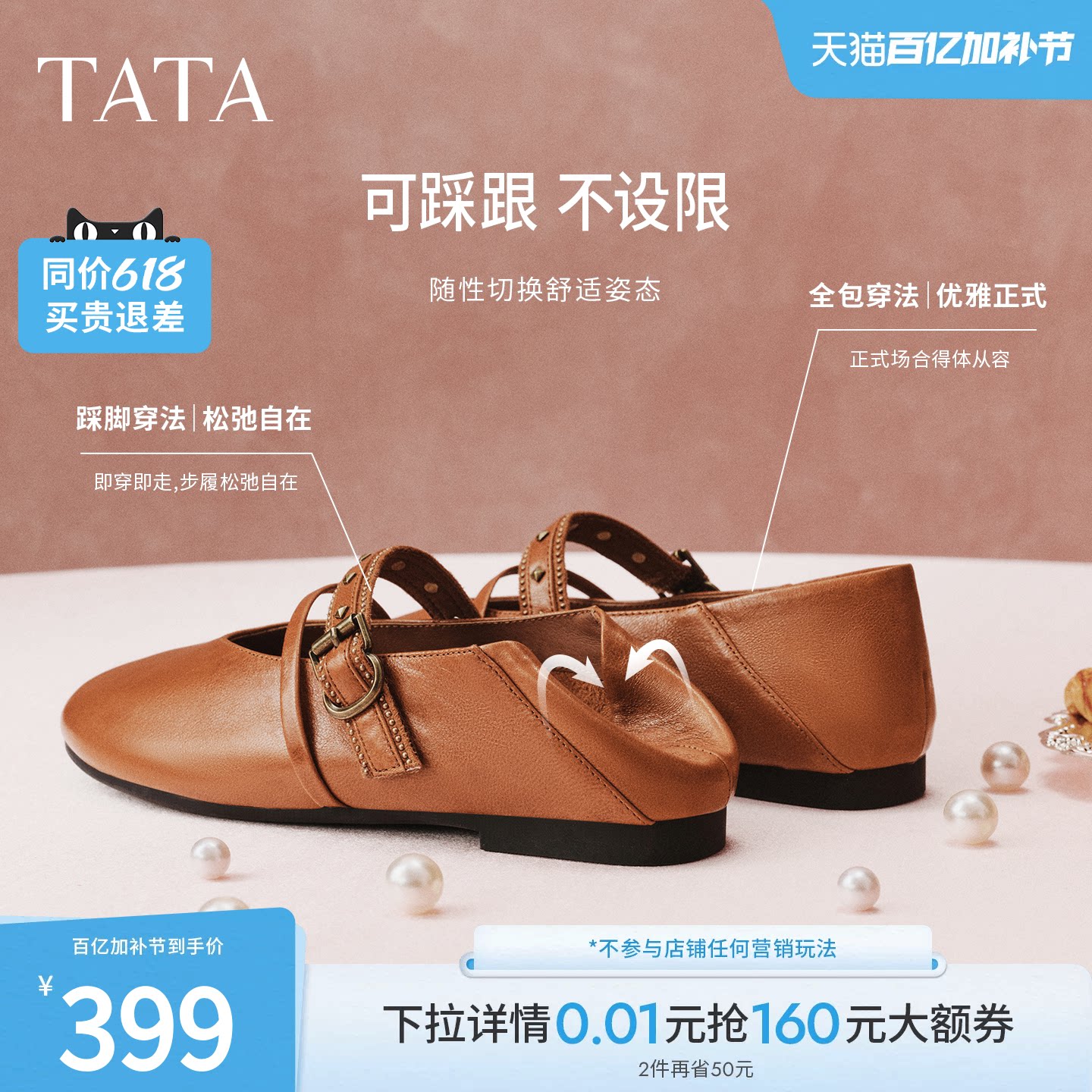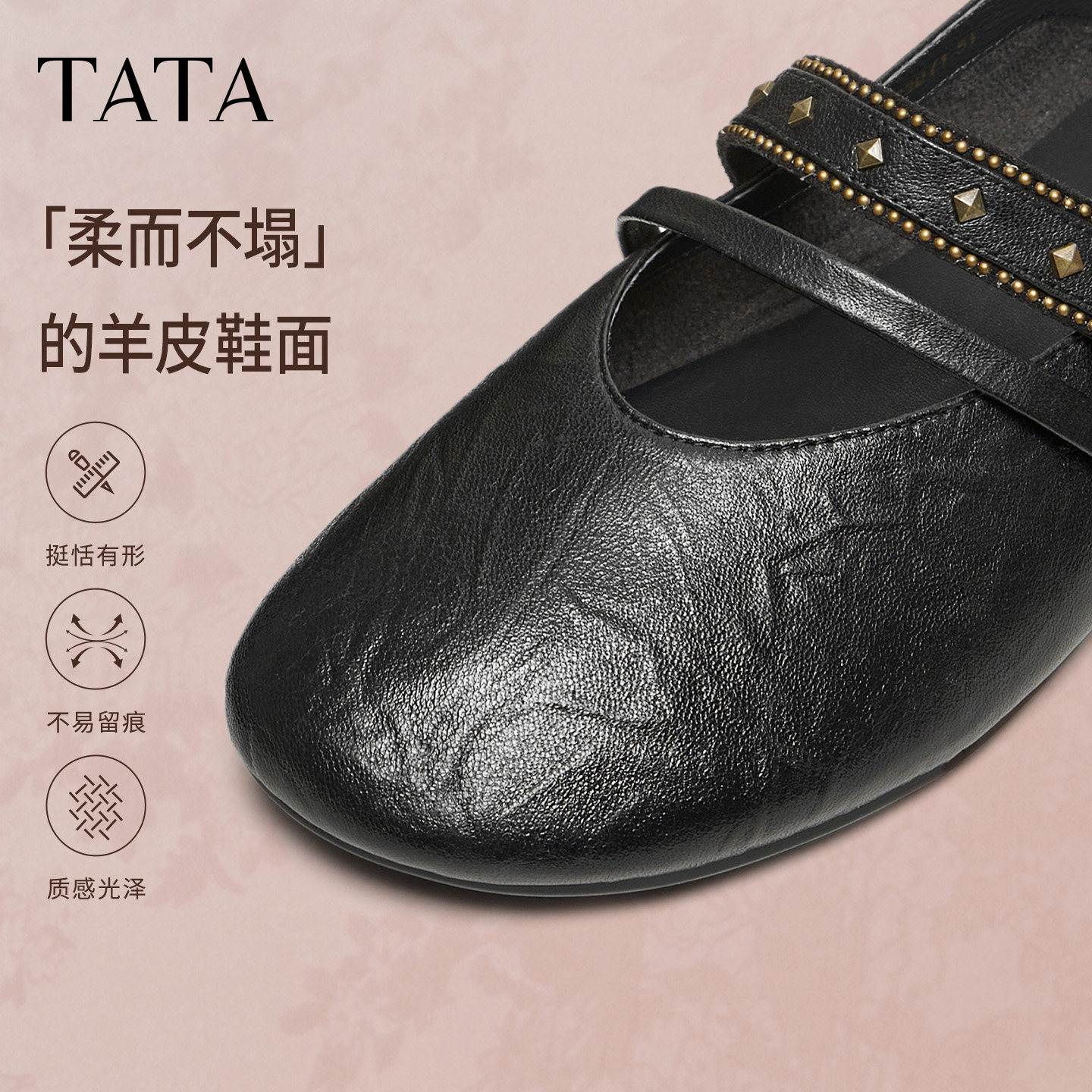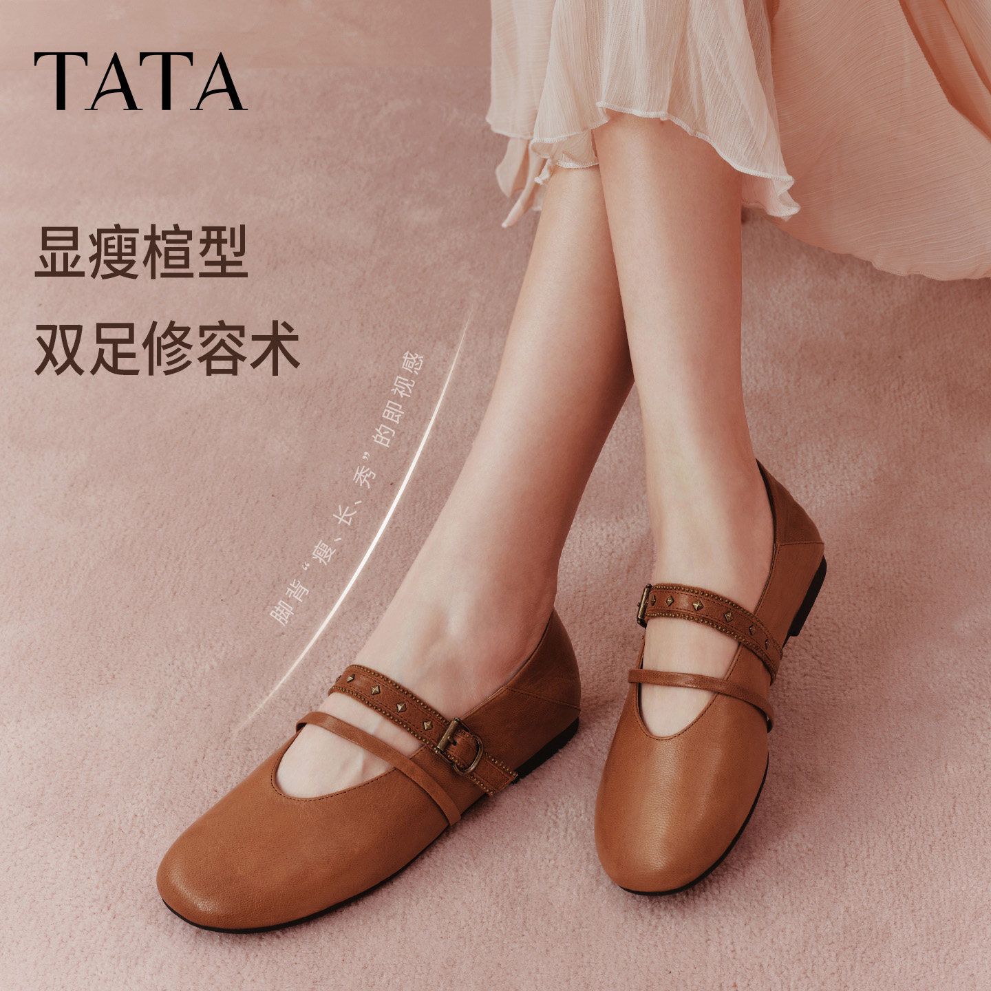 张小婉同款TATA他她艺术家玛丽珍鞋女羊皮芭蕾舞平底单鞋2026新款
