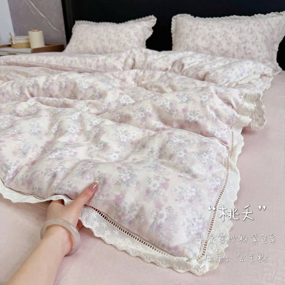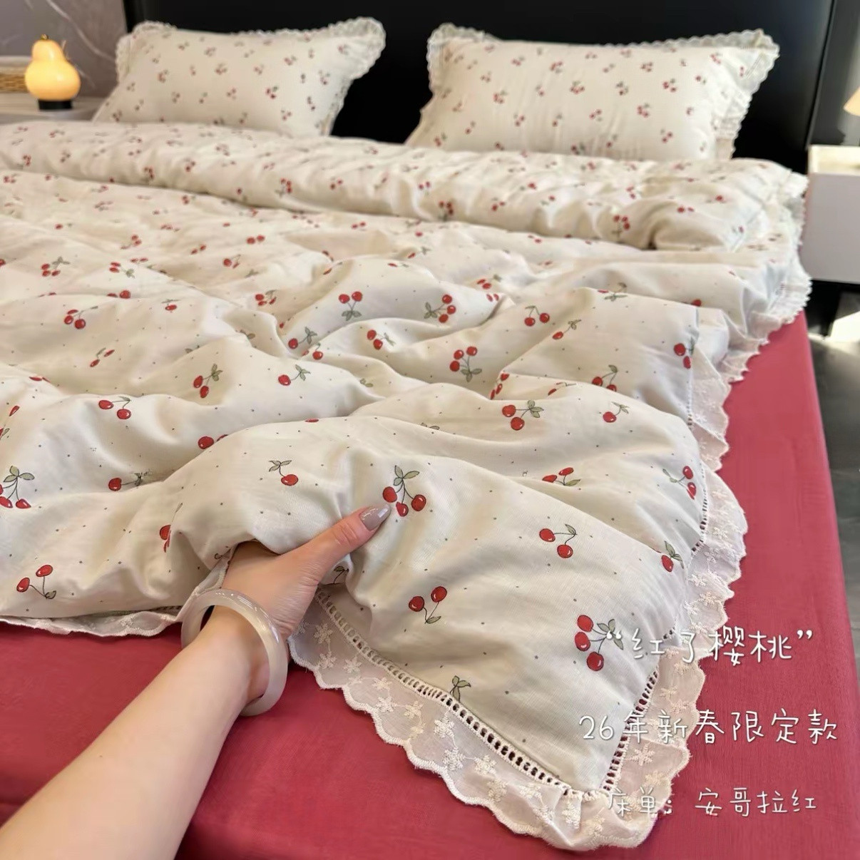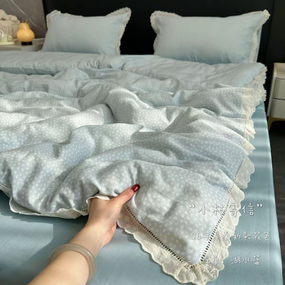 法式镂空花边纯棉双层纱四件套A类母婴级裸睡0负担透气防潮ins风