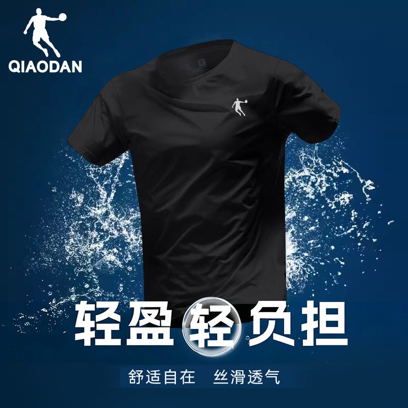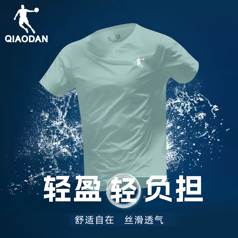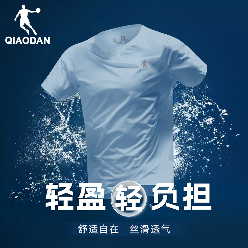 乔丹短袖T恤男装2026夏季新款冰丝透气速干衣刺绣紫色爸爸体恤衫