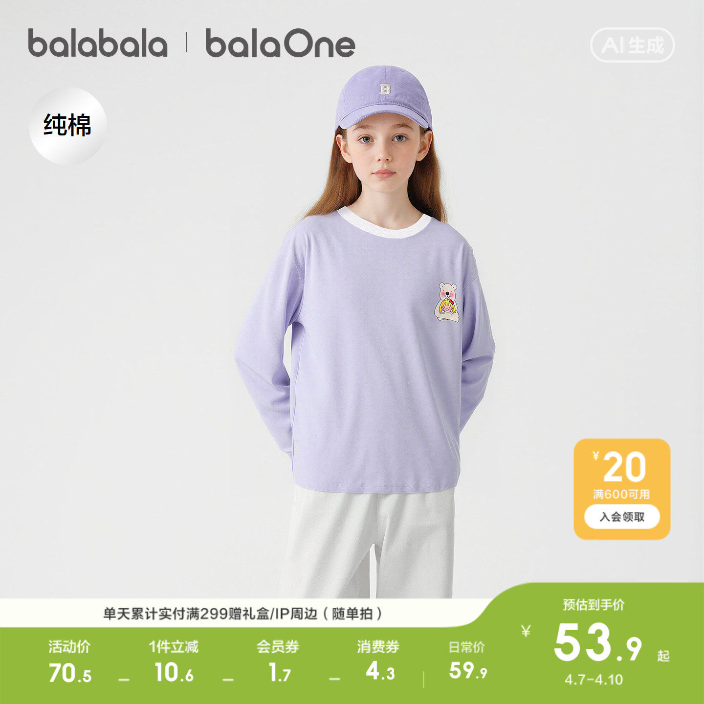巴拉巴拉童装女童长袖t恤儿童2026春季新款上衣大童纯棉打底衫潮