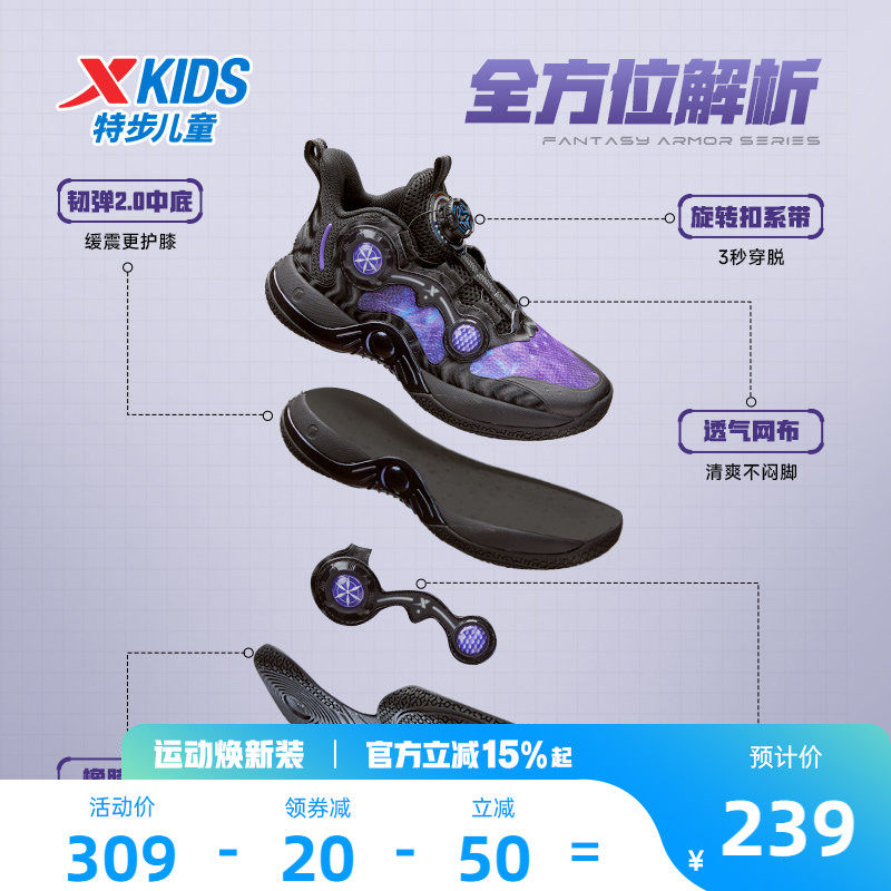 幻甲3.0特步童鞋2026年春季儿童运动鞋男童防滑中大童高帮篮球鞋