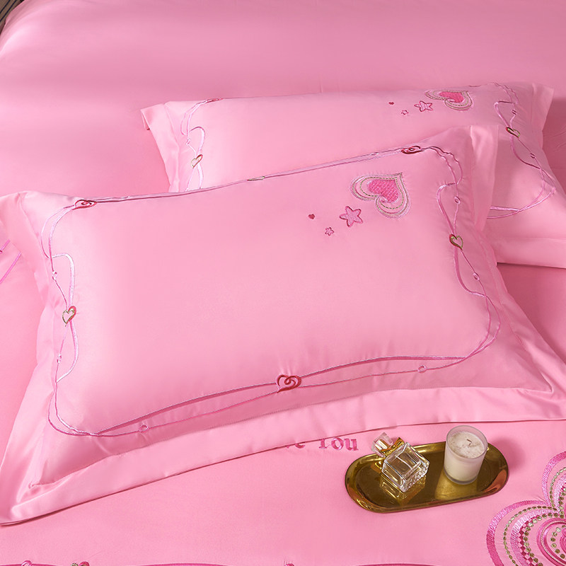 120支轻奢真丝婚庆四件套粉色刺绣双面冰丝裸睡结婚被套床上用品
