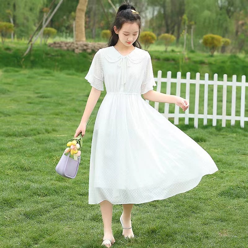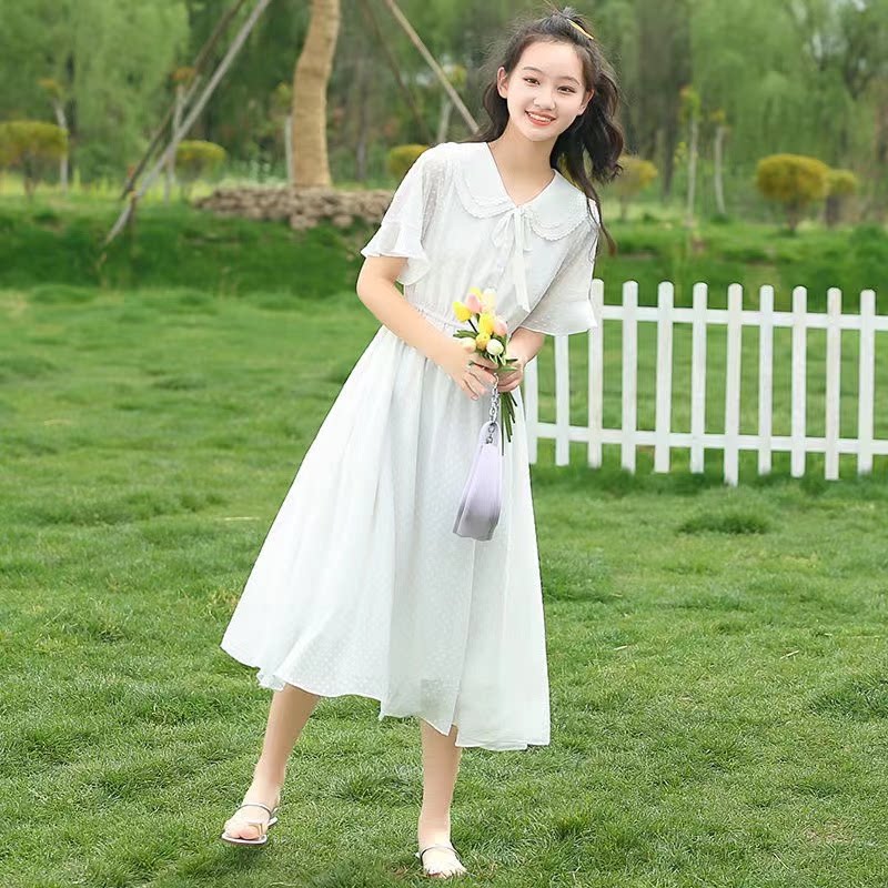 少女时尚洋气连衣裙长款过膝初中学生夏装气质紫色中大童仙女裙子