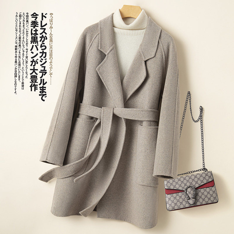 秋冬新款高端双面羊绒大衣女韩版宽松中长款小个子羊毛呢外套韩版