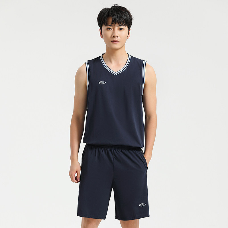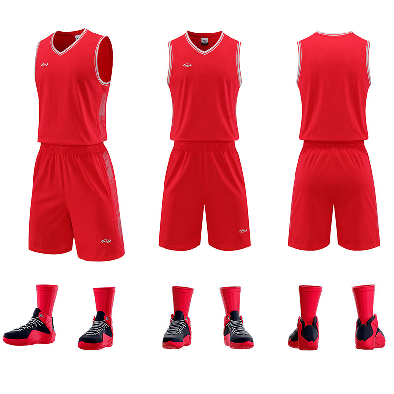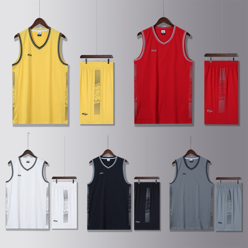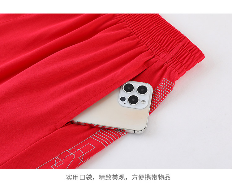 大红色纯棉运动套装无袖球衣青少年跑步服宽松家居服男透气篮球服