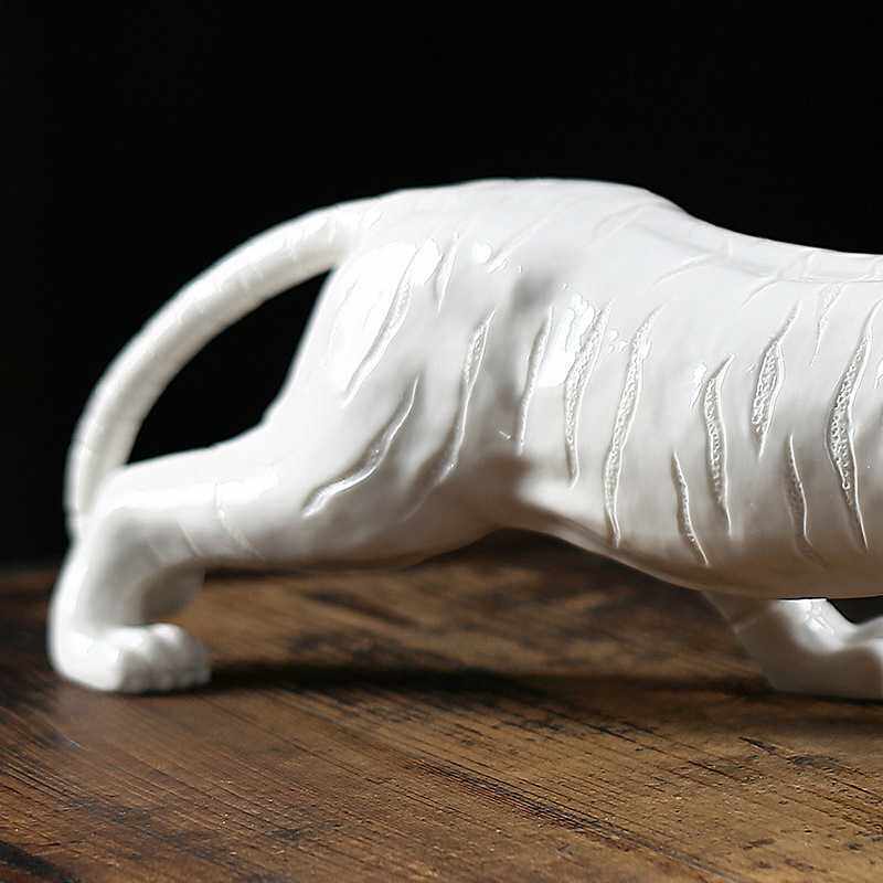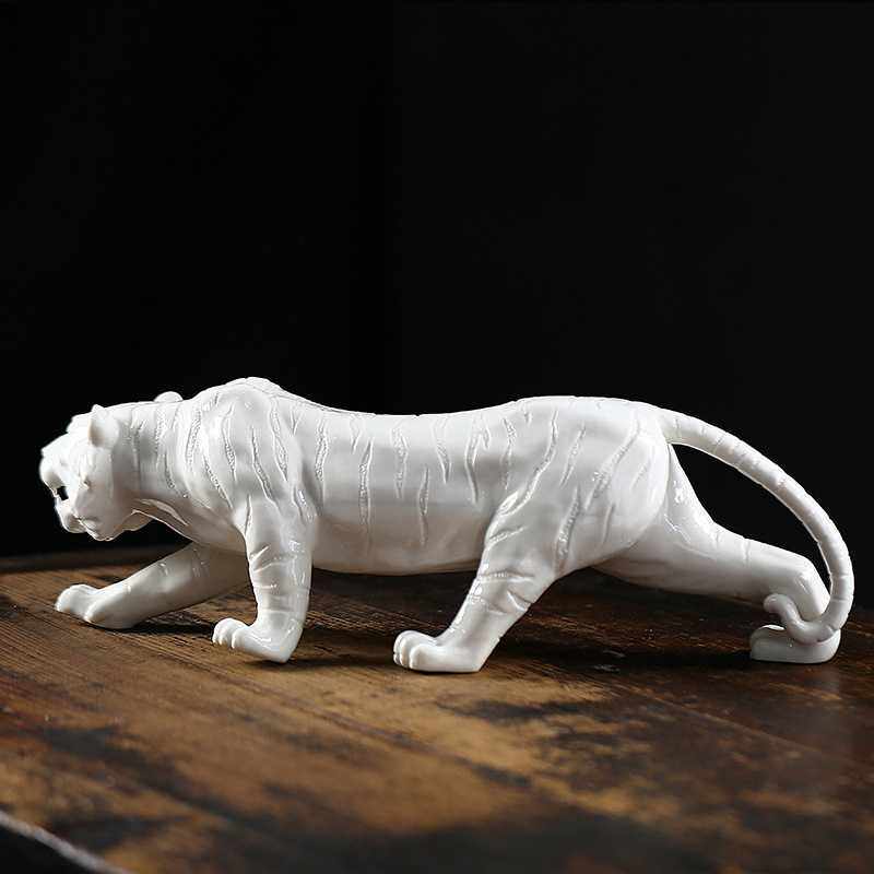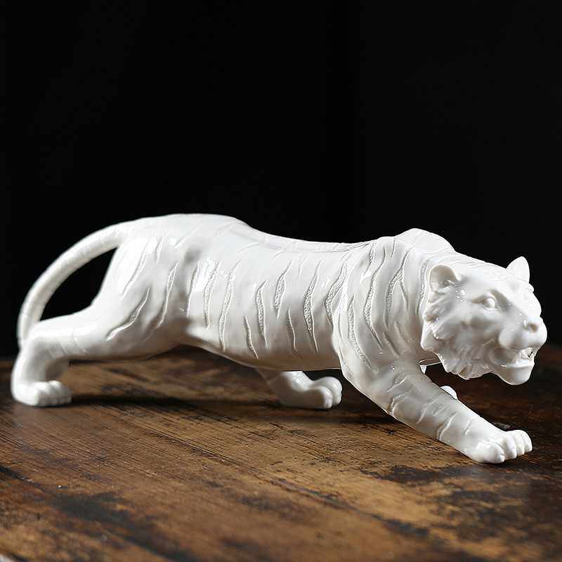 十二生肖老虎摆件陶瓷动物白虎家居工艺品客厅办公室装饰摆设