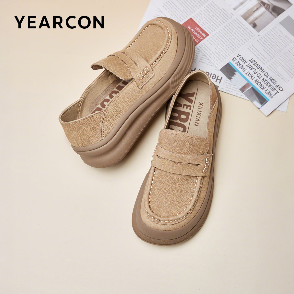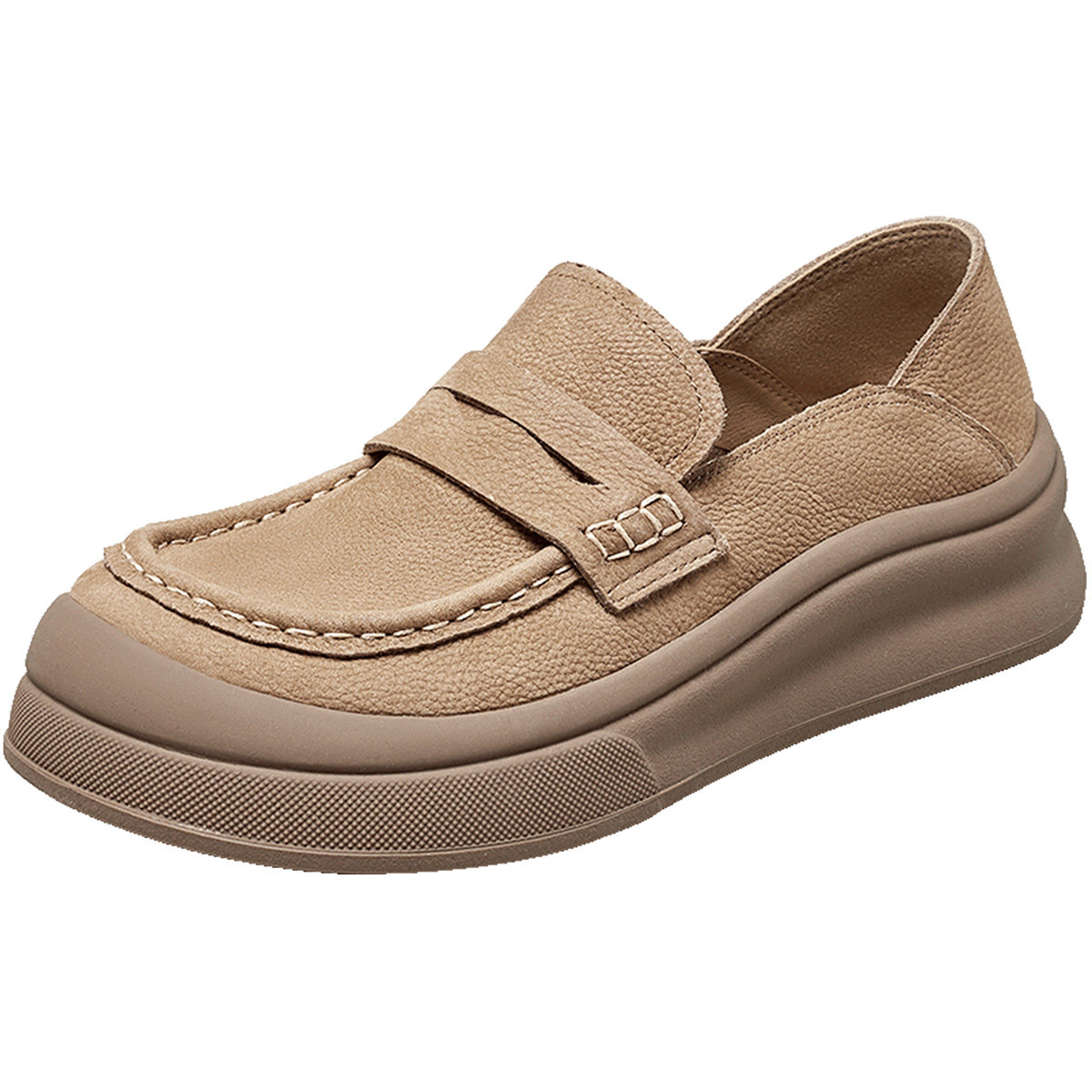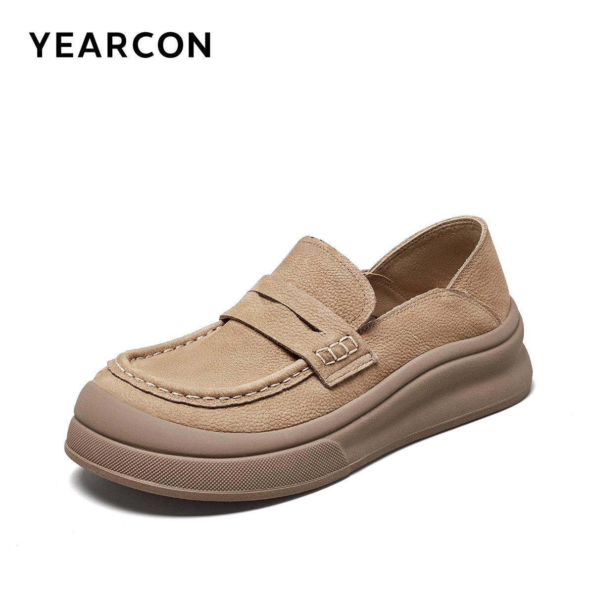 意尔康女鞋春季中跟通勤真皮乐福鞋软底厚底一脚蹬复古单鞋袋鼠鞋