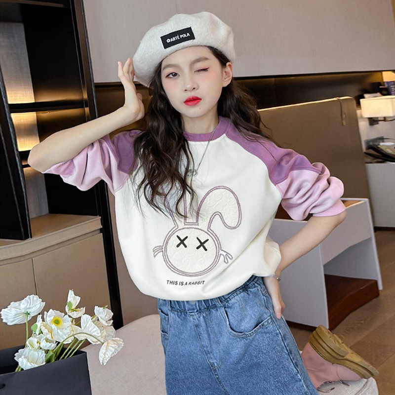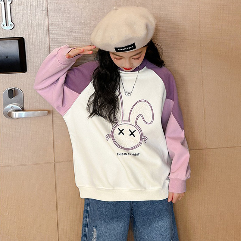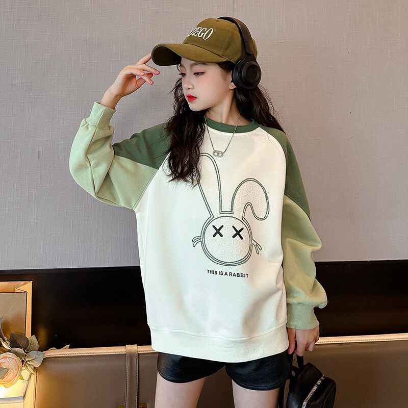 女童卫衣2025中大童秋装洋气秋款时髦T恤上衣加绒绿色紫色休闲