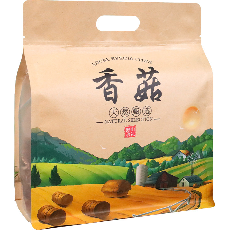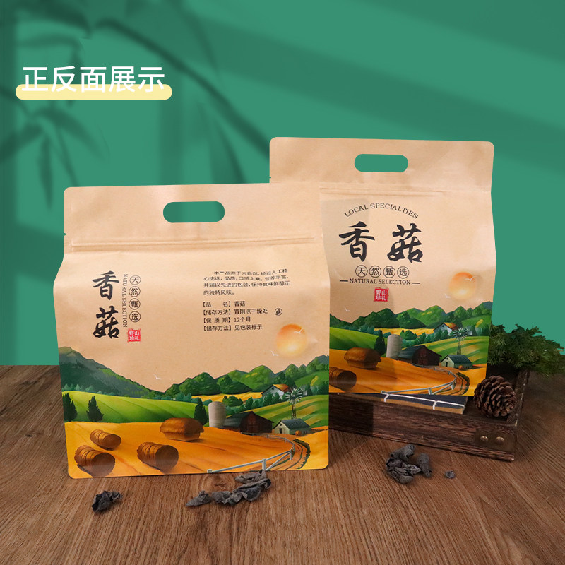 香菇包装袋黑木耳牛皮纸自封袋一斤八边封山珍菌菇土特产密封袋