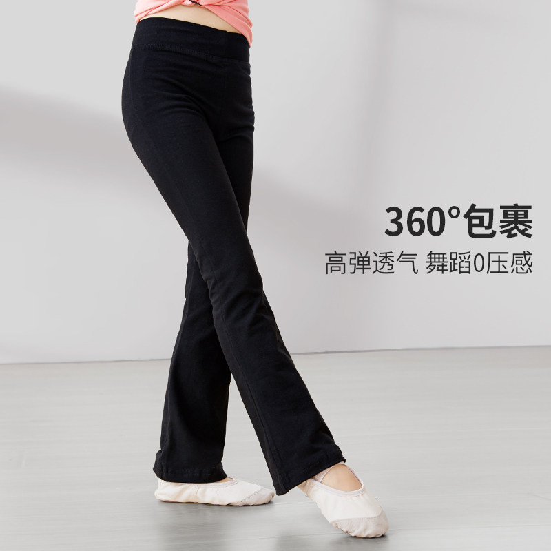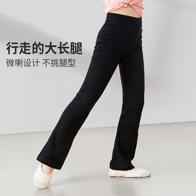 儿童舞蹈服套装女童芭蕾舞体操服练功裤子黑色长袖上衣分体喇叭裤