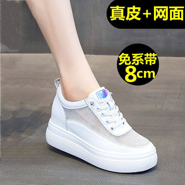 2026新款春季真皮内增高8CM小白鞋女一脚蹬轻便软底休闲板鞋白色