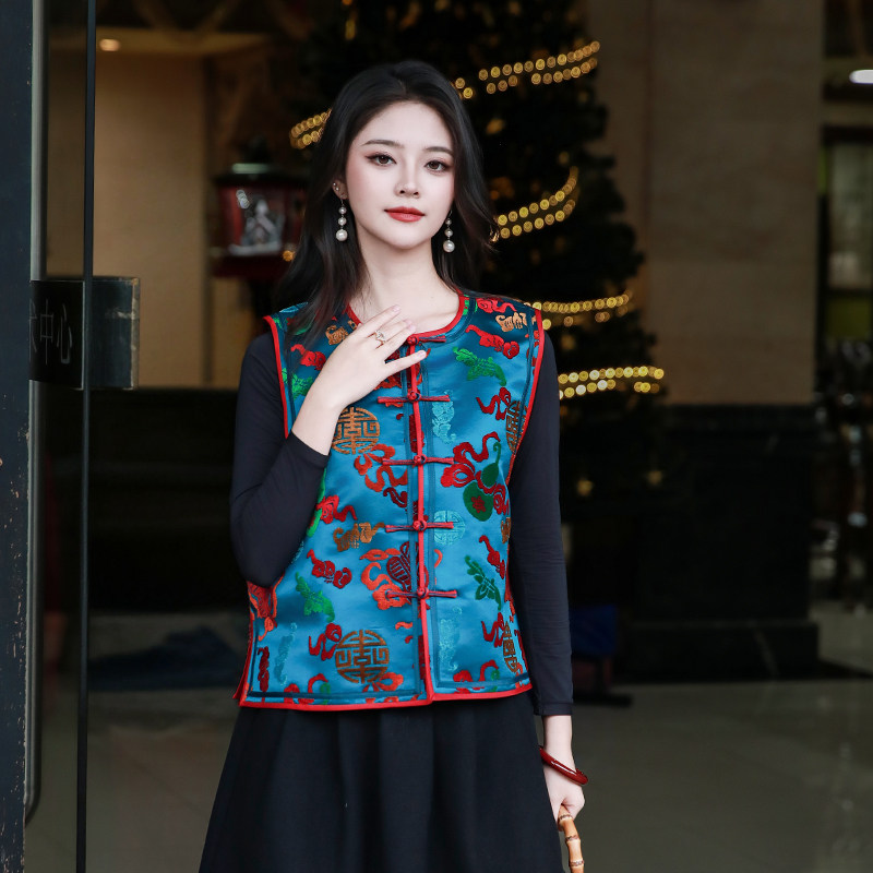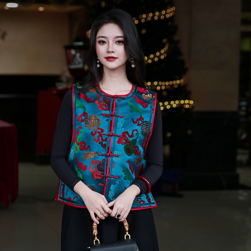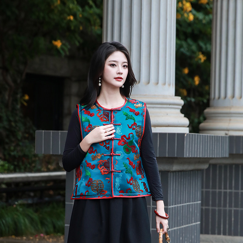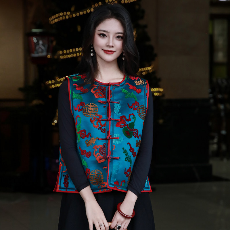 舞惊鸿三重门中式真丝漳绒缎马甲盘扣上衣女款2026新款冬时尚高端