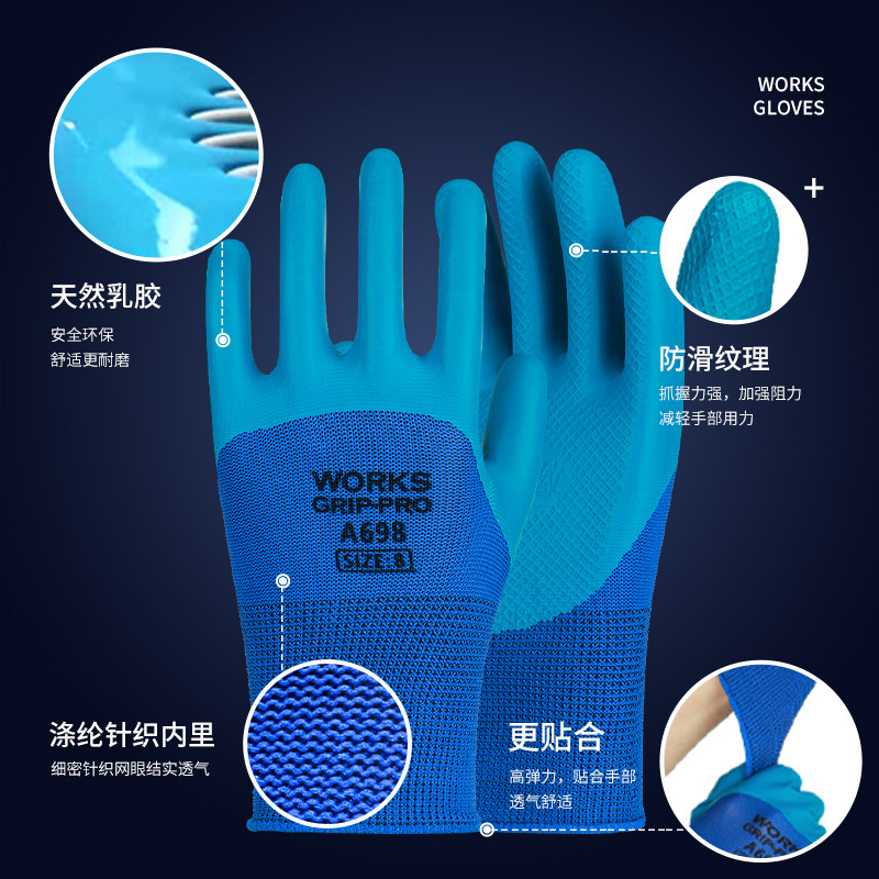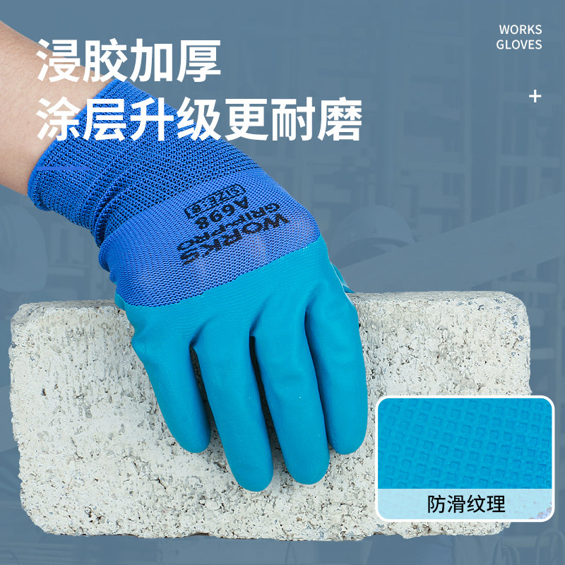 手套工作劳保耐磨防滑加厚劳动乳胶橡胶劳工防护干活工地浸胶防水