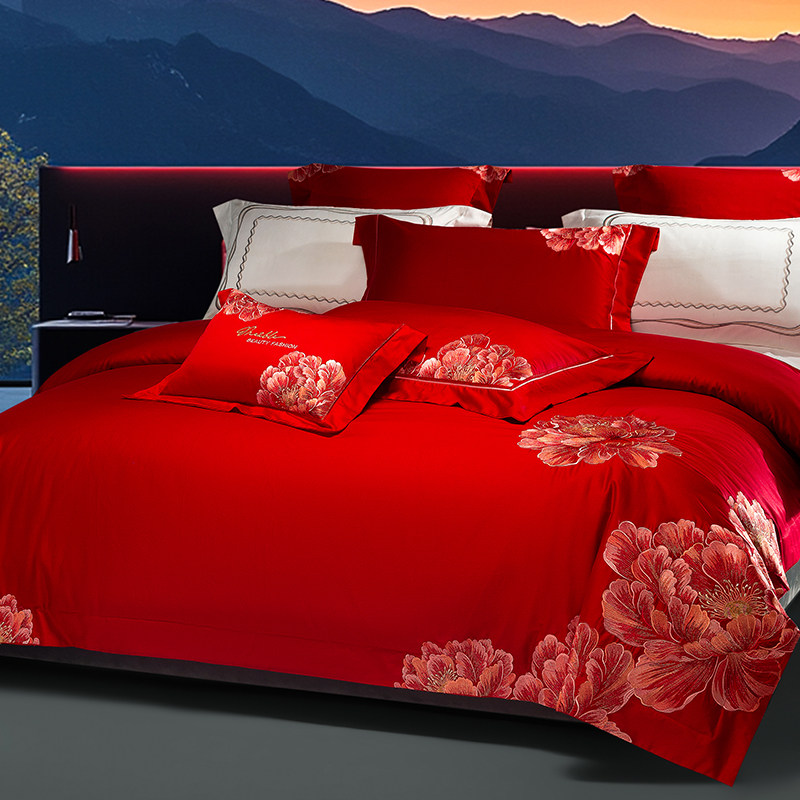 结婚庆四件套全纯棉高级感大红色年轻人日常可用高档被套床上用品