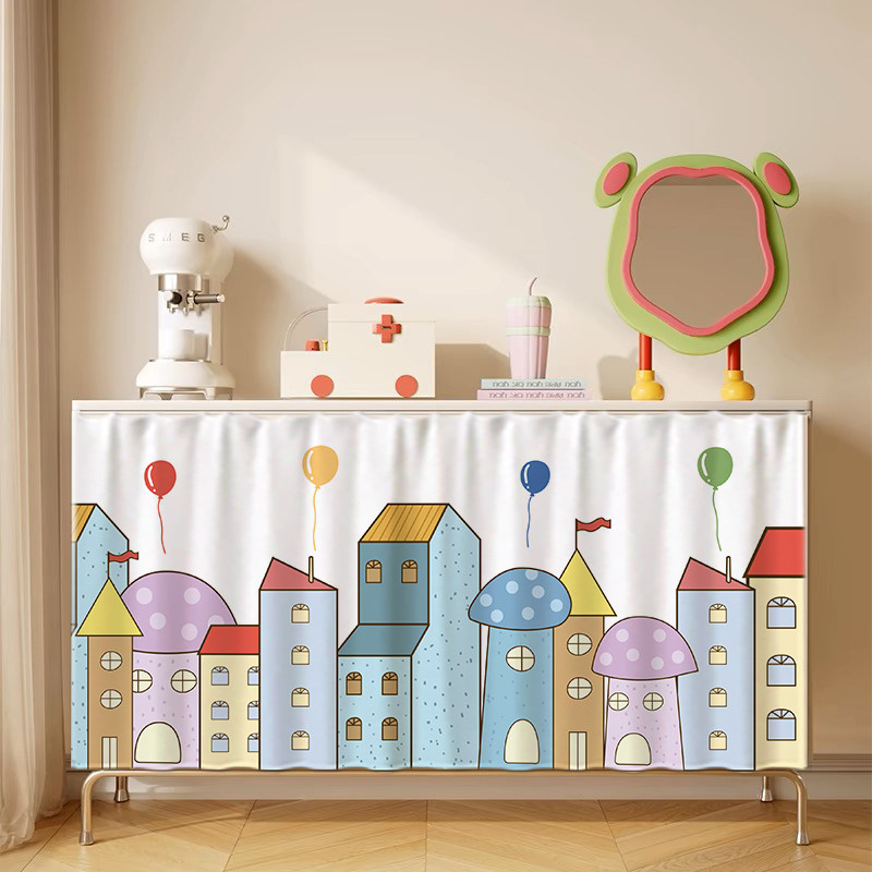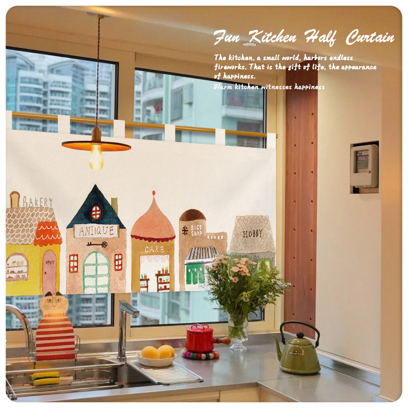 卡通厨房门帘儿童房半帘隔断帘遮挡短帘柜子帘防尘帘定制免打孔