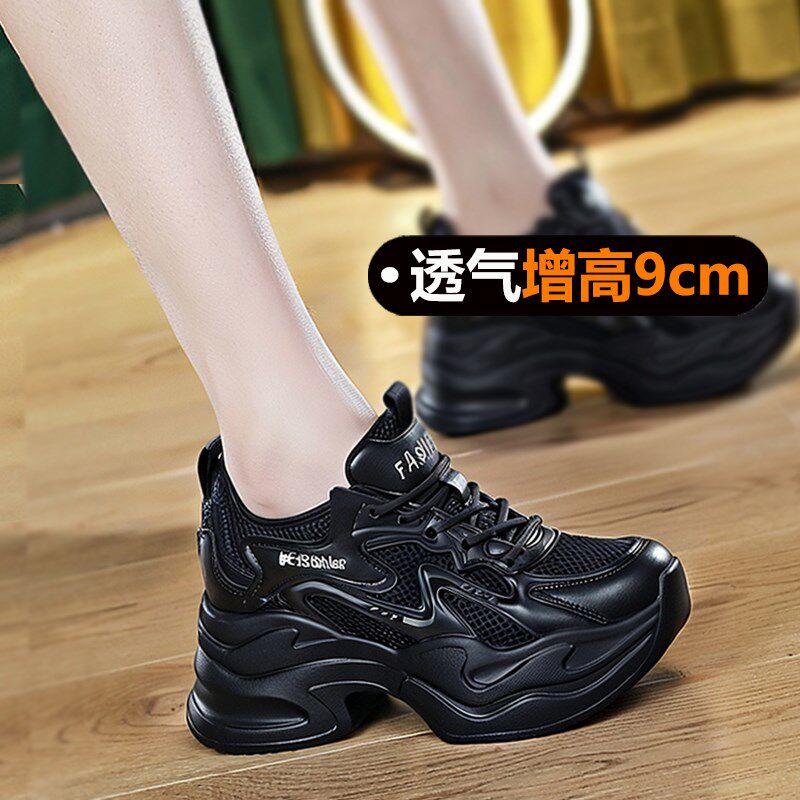 超轻9公分内增高运动鞋女网面透气女鞋夏季小个子轻便厚底老爹鞋