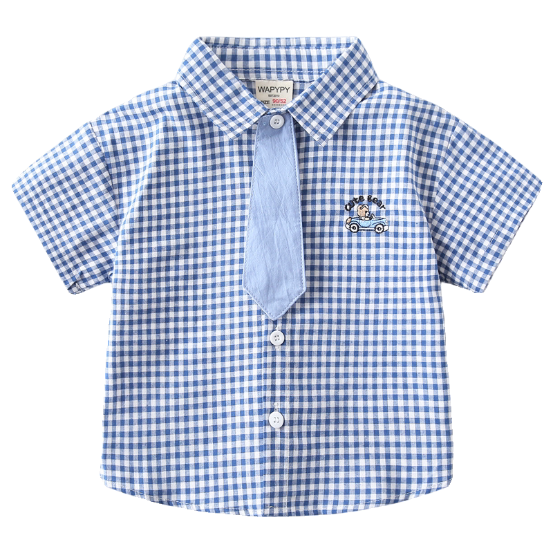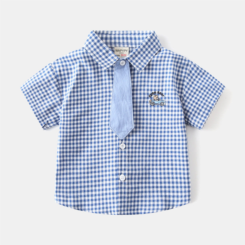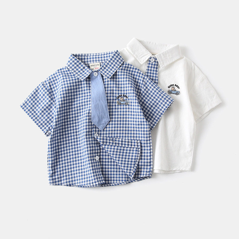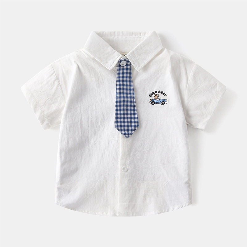 儿童短袖衬衫2026新款夏季韩版童装男童绅士领带中小童短衬衣夏装