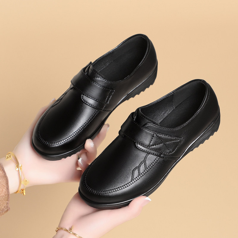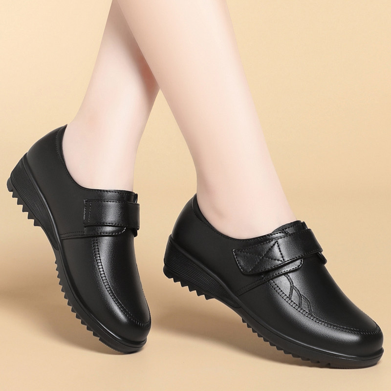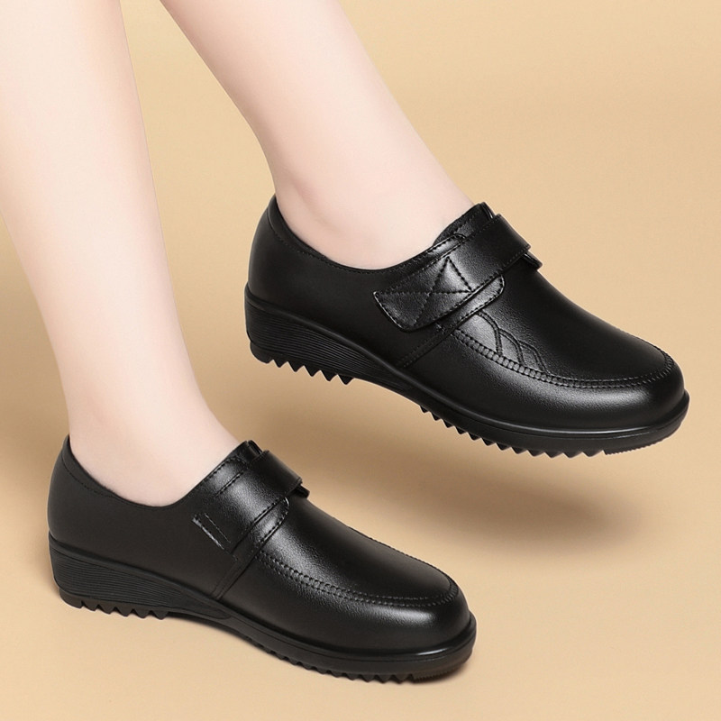 意尔康2026春季新款女单鞋正品真皮女鞋休闲妈妈鞋中跟牛皮鞋大码