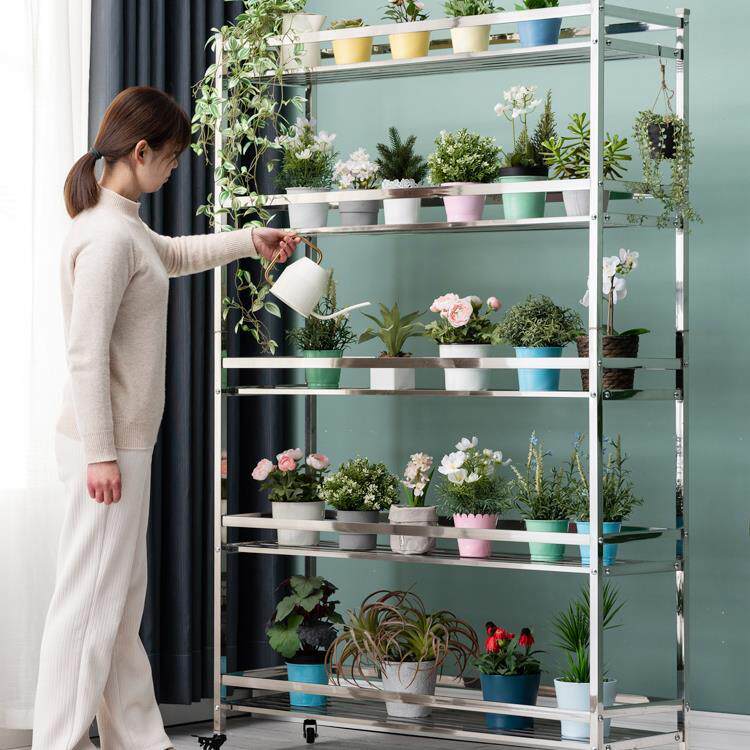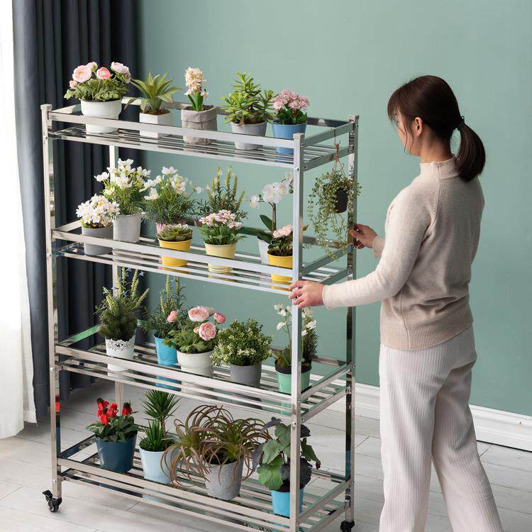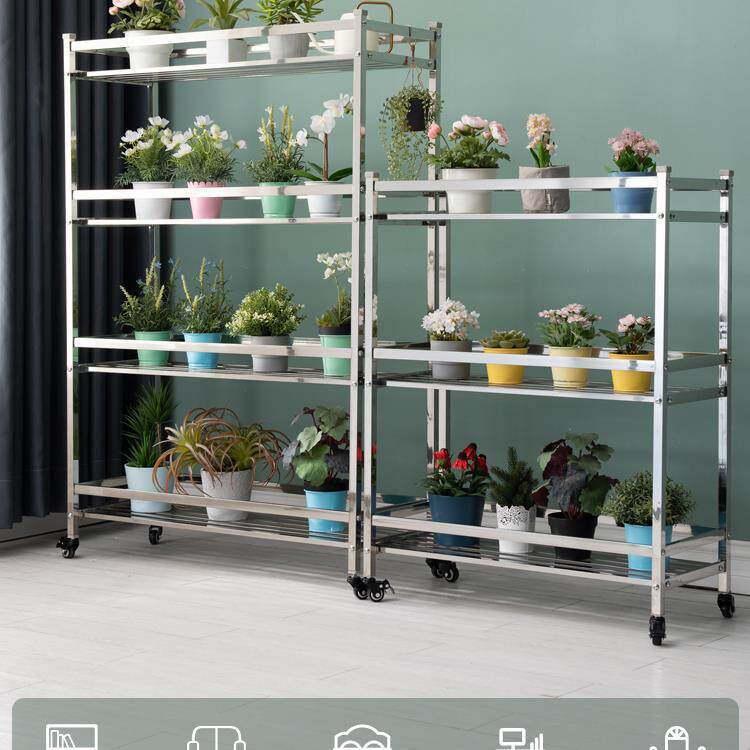 花架多肉多层不锈钢花架子阳台置物户外客厅落地式铁艺可移动带轮