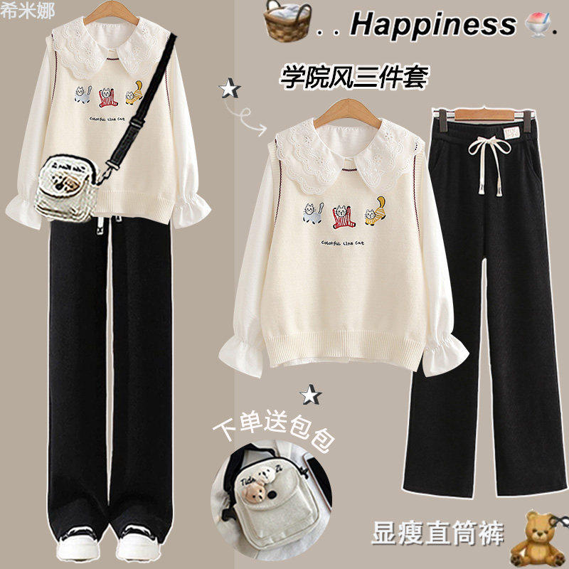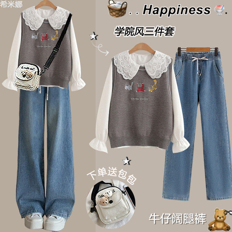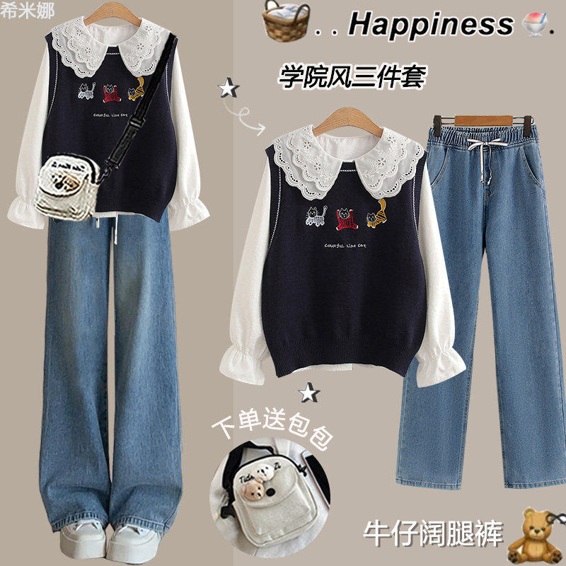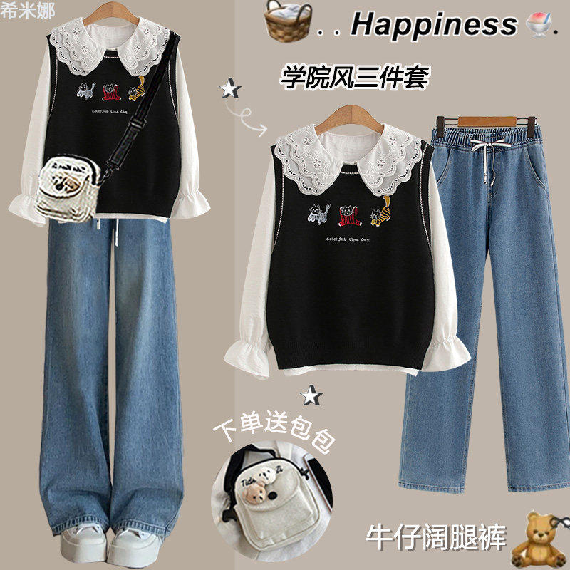 中学生春季套装女2025新款学院风时尚三件套初中生春装穿搭一整套