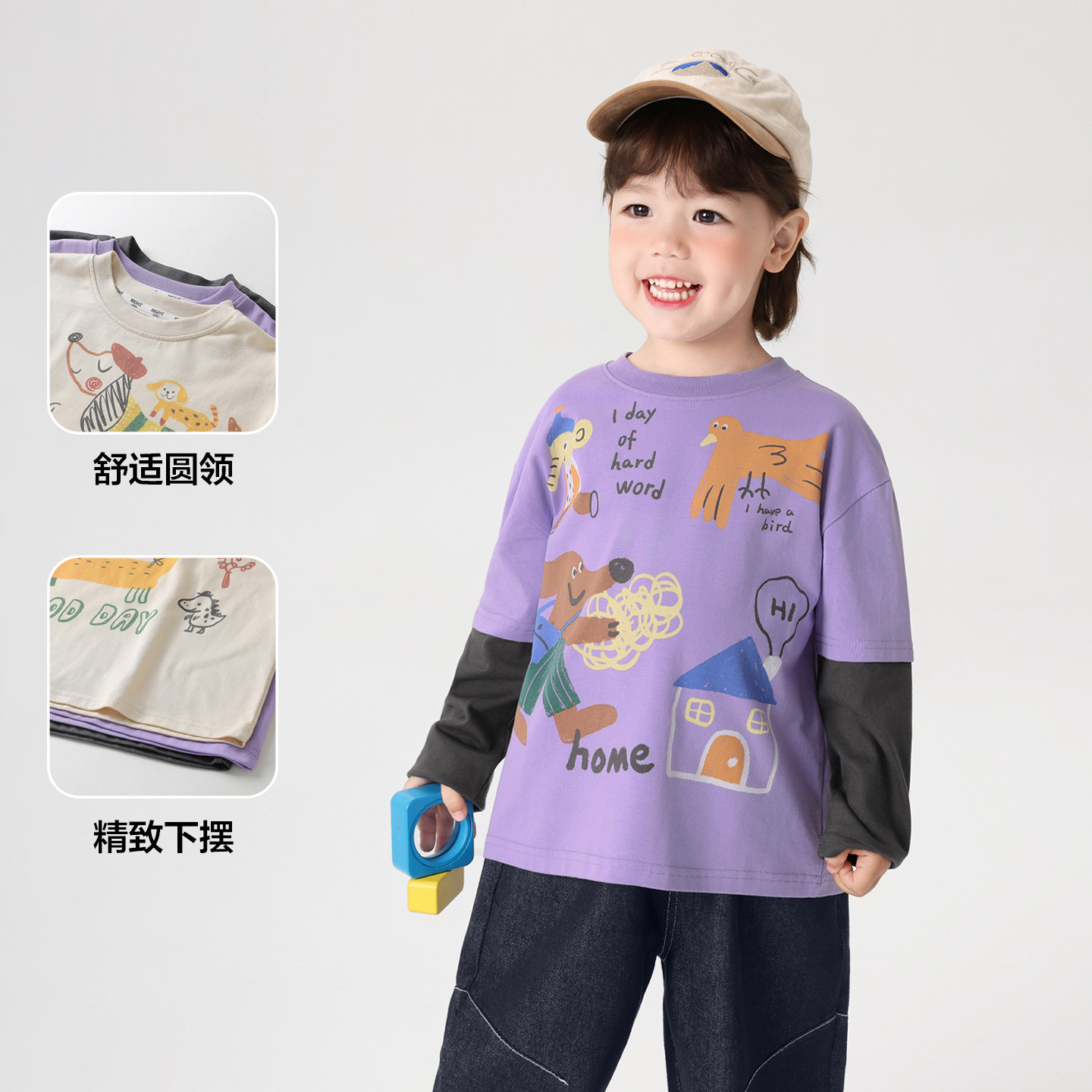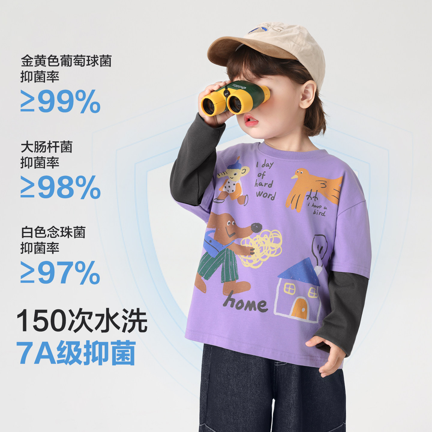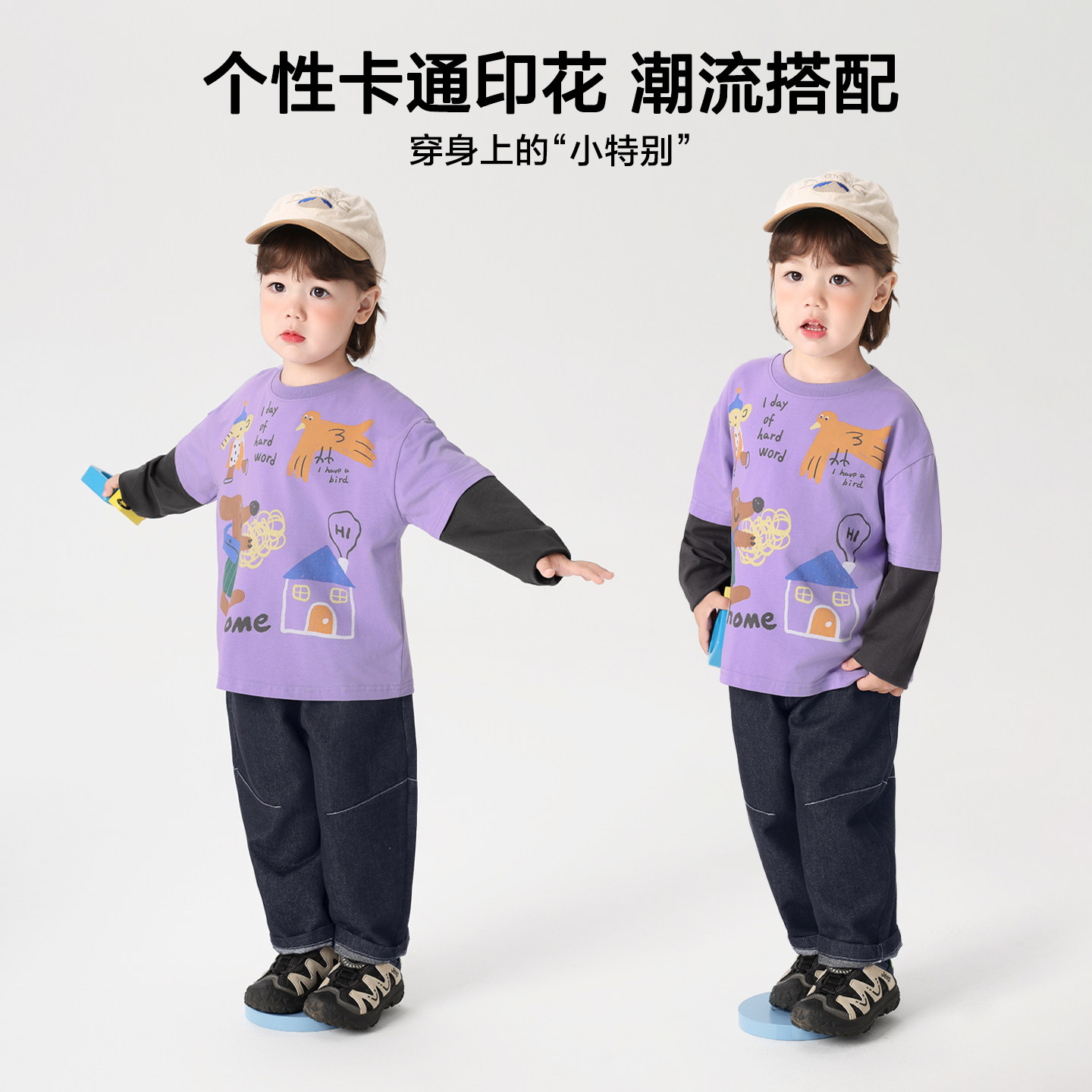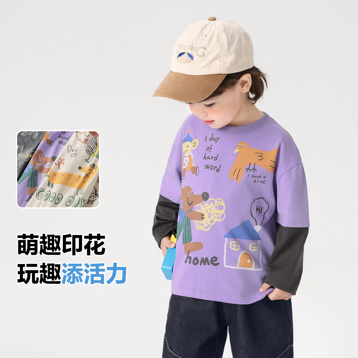 右欧男童内搭长袖T恤儿童女童打底衫假两件春秋新款童装休闲上衣