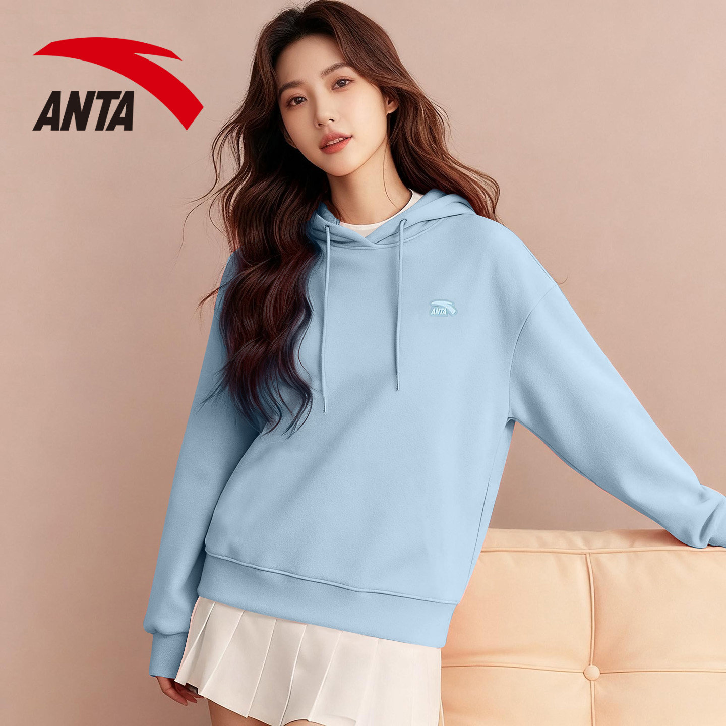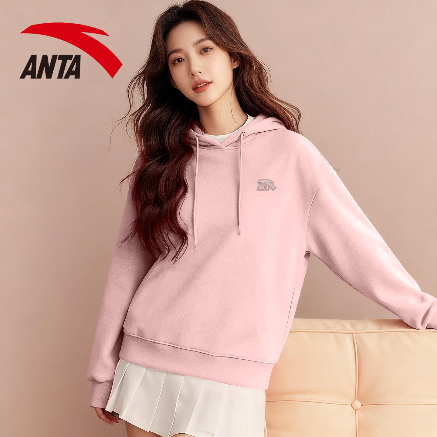 安踏女装酒红色卫衣女春秋款2026新款宽松大码高级感加绒连帽外套