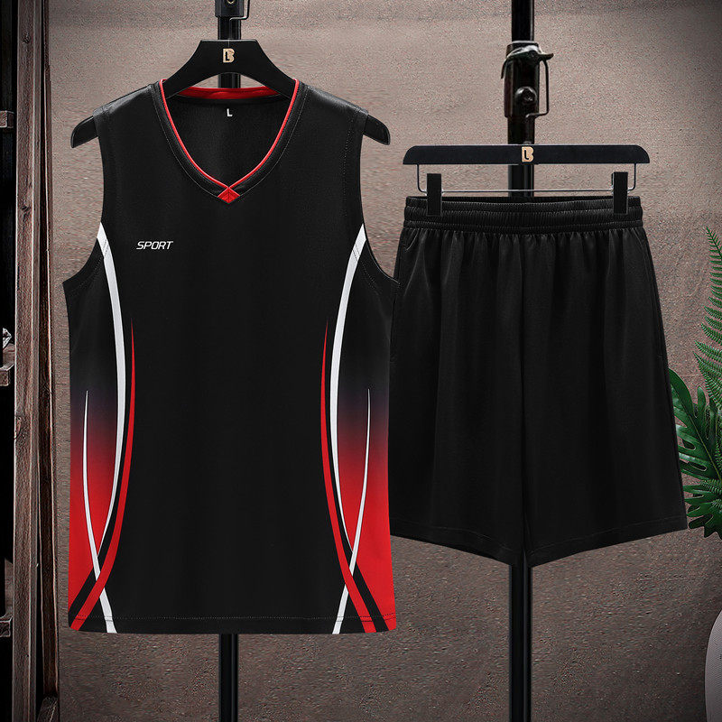 大码篮球服男无袖t恤背心胖子加肥冰丝速干跑步套装运动健身班服