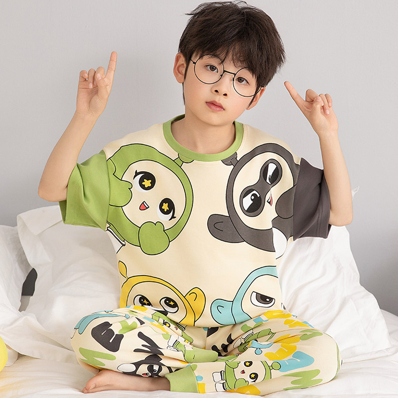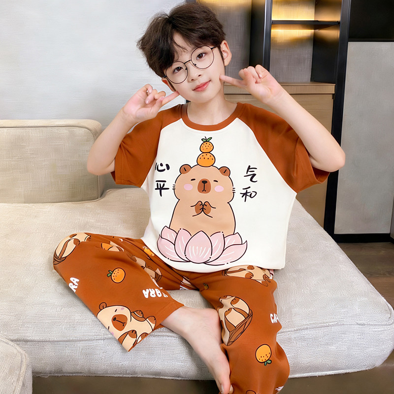 儿童睡衣男孩卡皮巴拉纯棉短袖2026新款可外穿家居服夏季男童套装