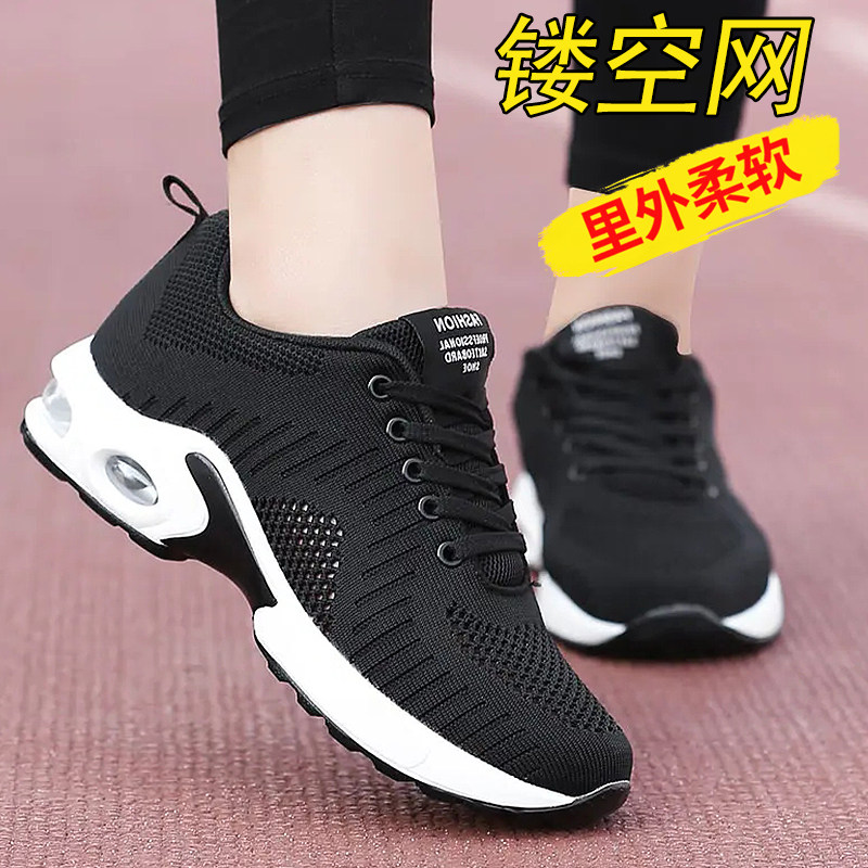 中年运动鞋女鞋新款妈妈女款网面黑色春秋透气球鞋软底鞋子休闲鞋