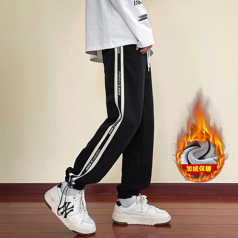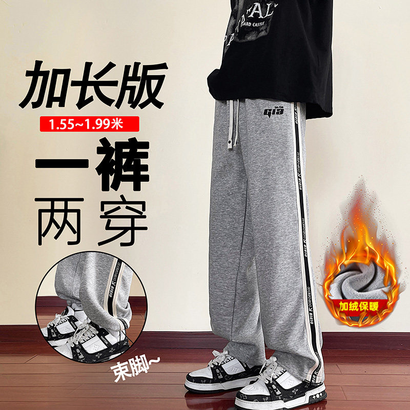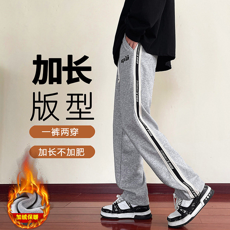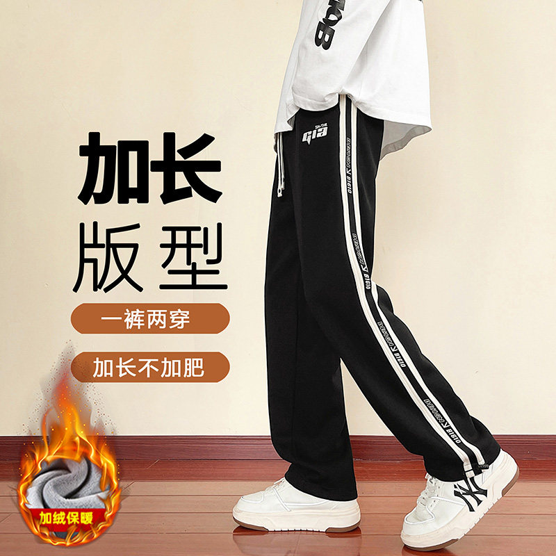 青少年休闲裤子男加长版秋冬季加绒加厚直筒卫裤初高中学生运动裤