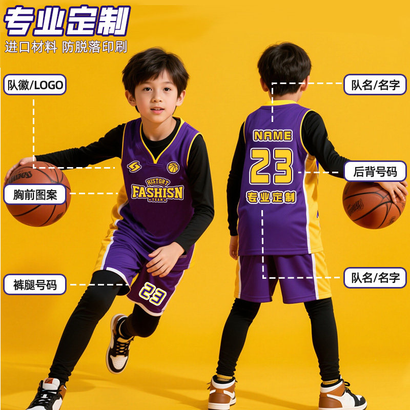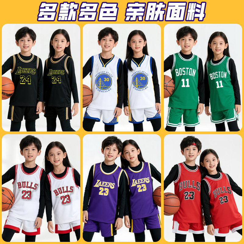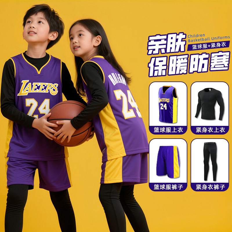 儿童篮球服套装秋冬四件套训练服男童女童库里詹姆斯科比球衣24号