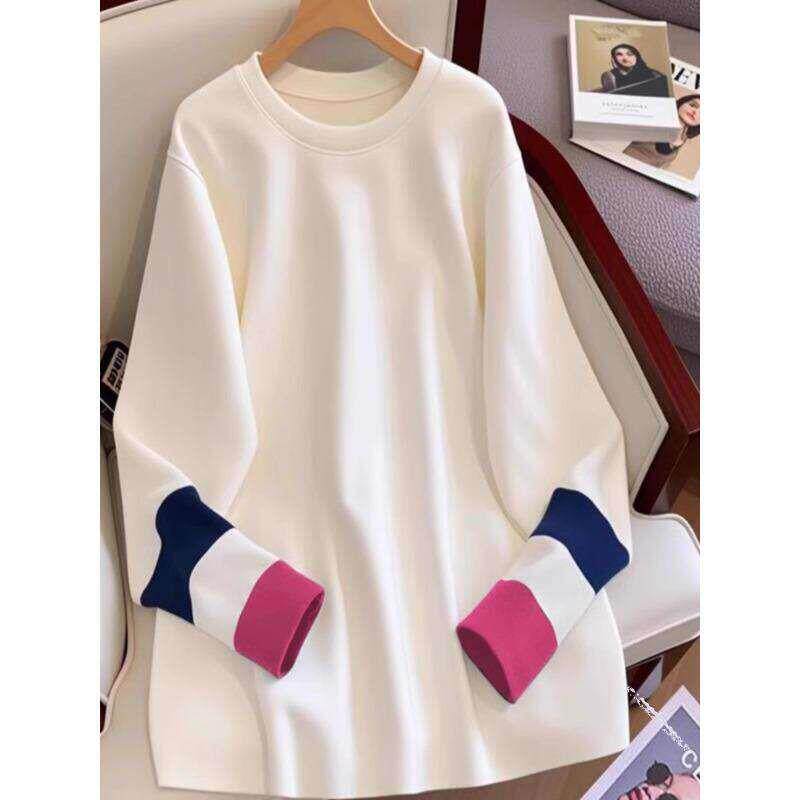 中长款欧货长袖T恤春季女款2026新款大码胖mm遮屁股配鲨鱼裤上衣