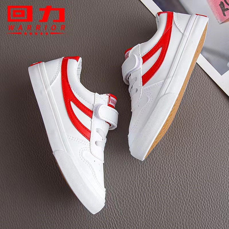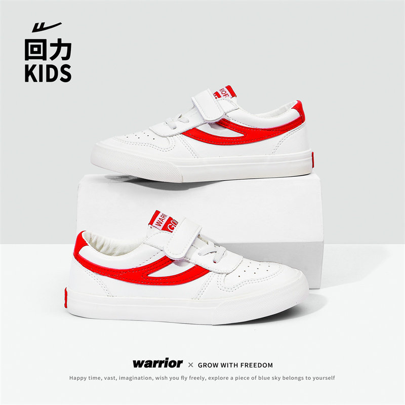 回力童鞋2023新款男女童板鞋 宝宝百搭中大童皮面儿童小白鞋校鞋
