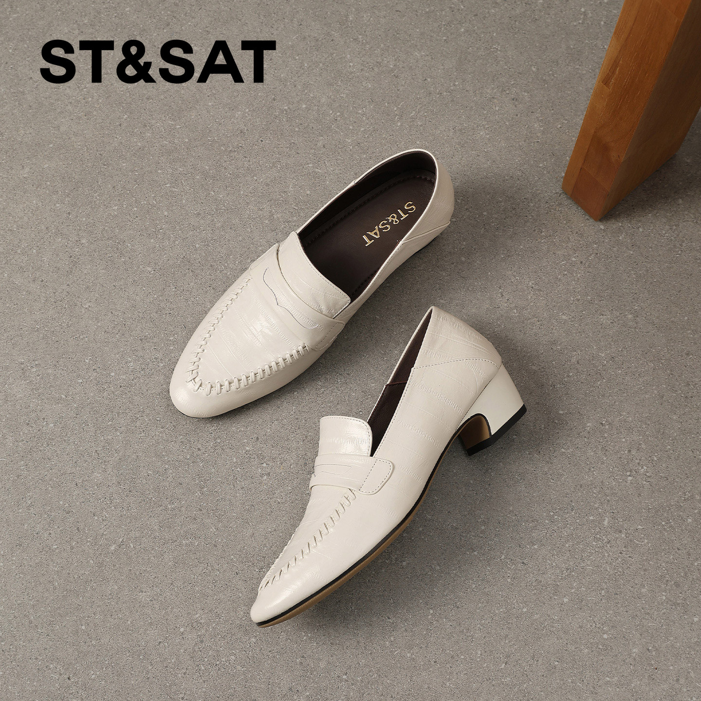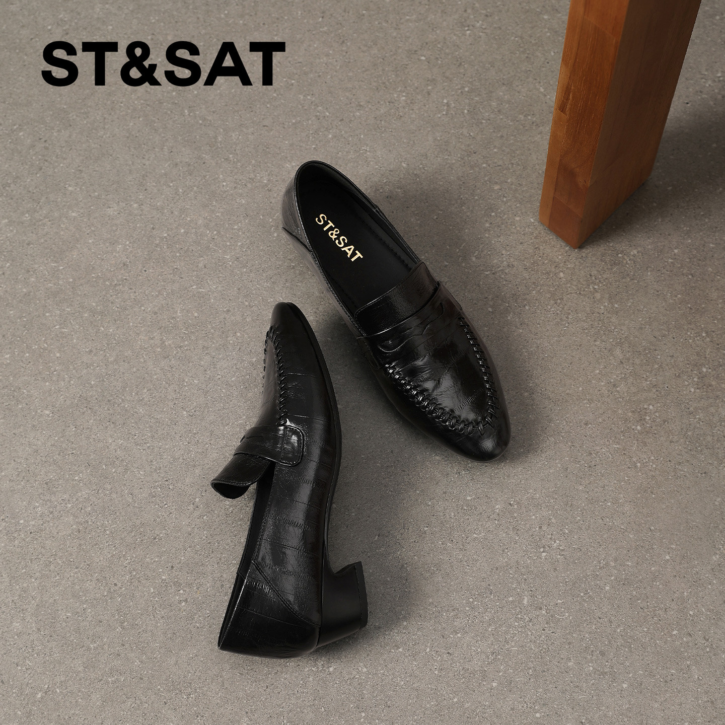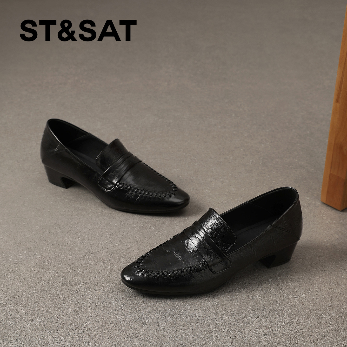 星期六英伦风真皮乐福鞋女2026春季新款粗跟一脚蹬上班通勤小皮鞋