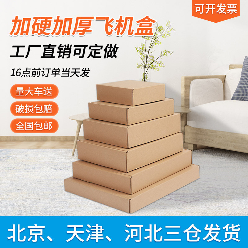 正方形飞机盒定制牛皮纸盒打包箱子服装包装快递盒特硬小盒子扁平