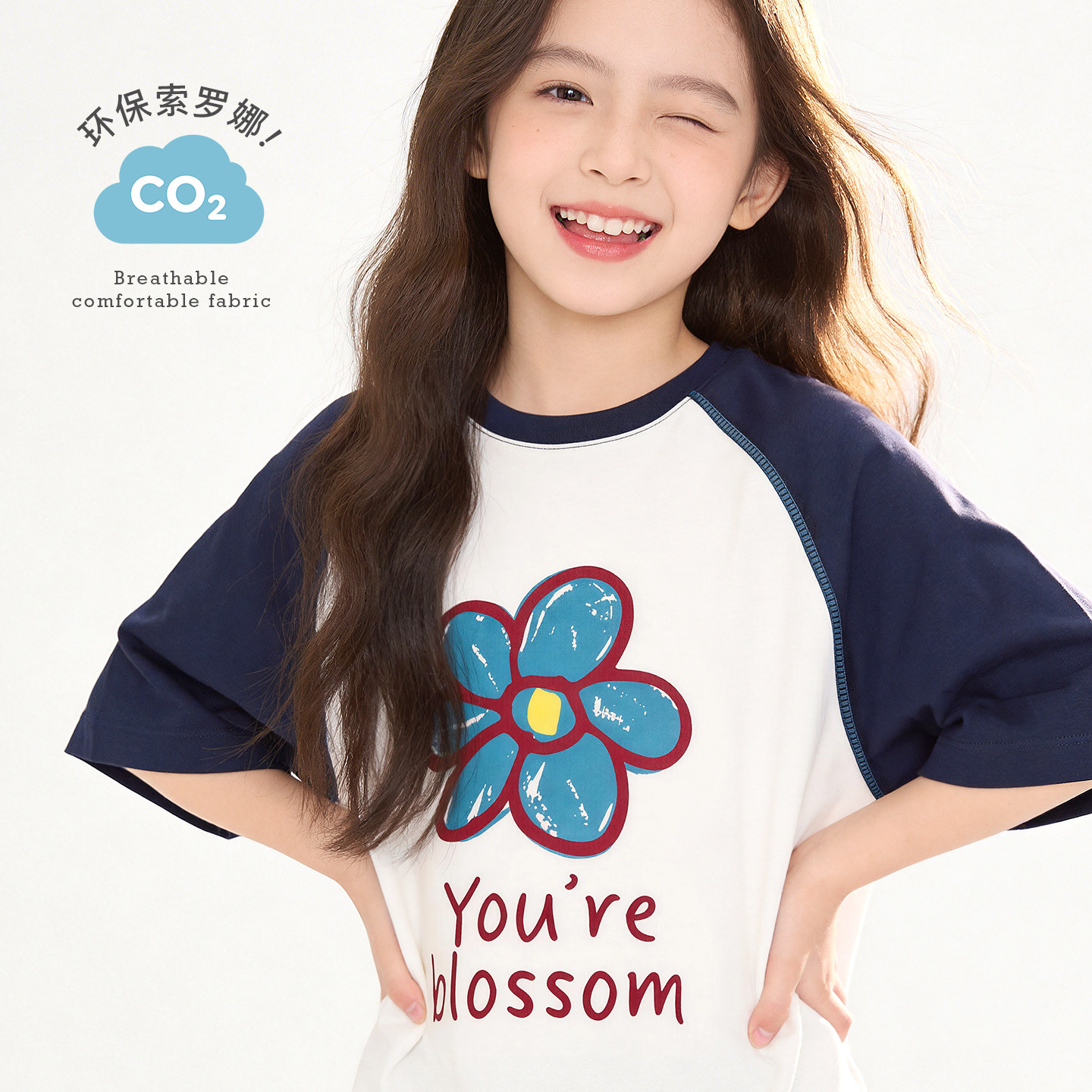 女童短袖t恤2026新款夏季儿童上衣大童薄打底衫女孩洋气白色童装