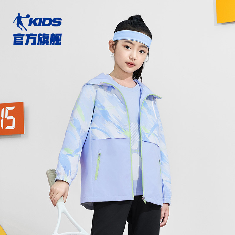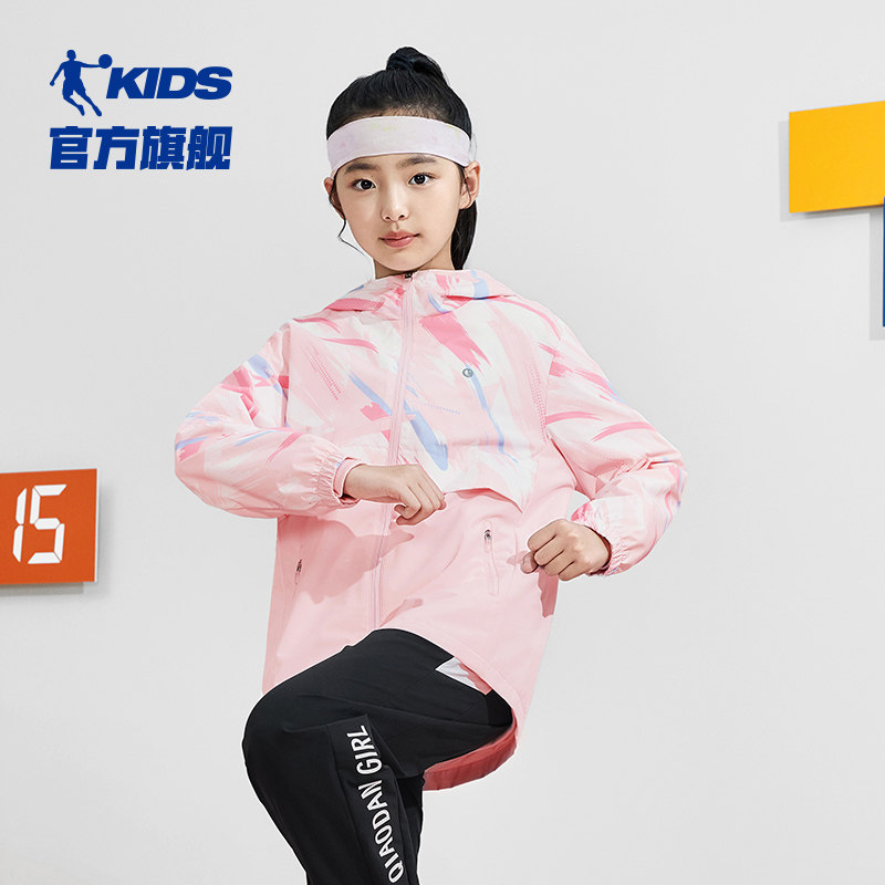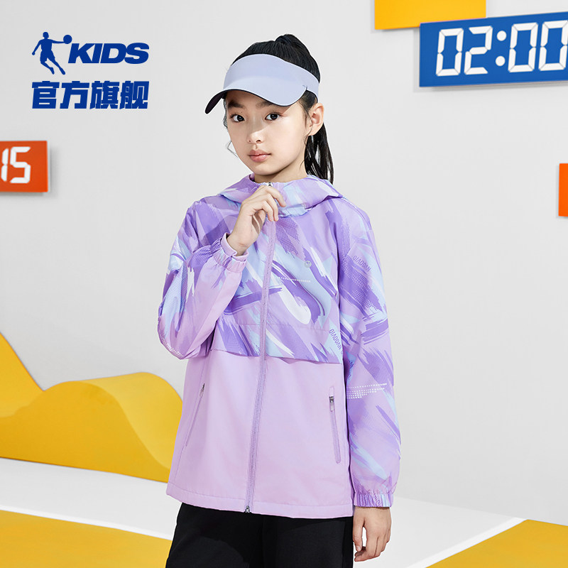 中国乔丹童装女童外套春秋款2026新款中大童网布风衣薄款运动秋装