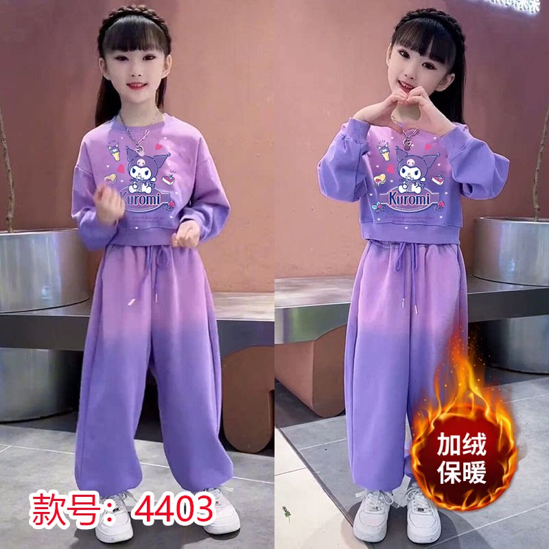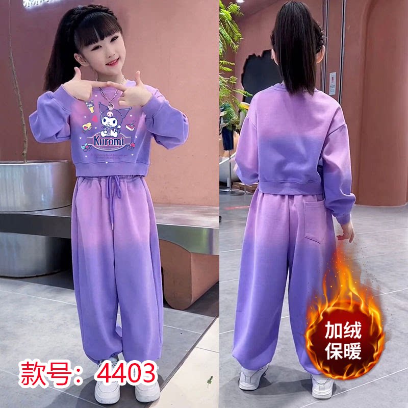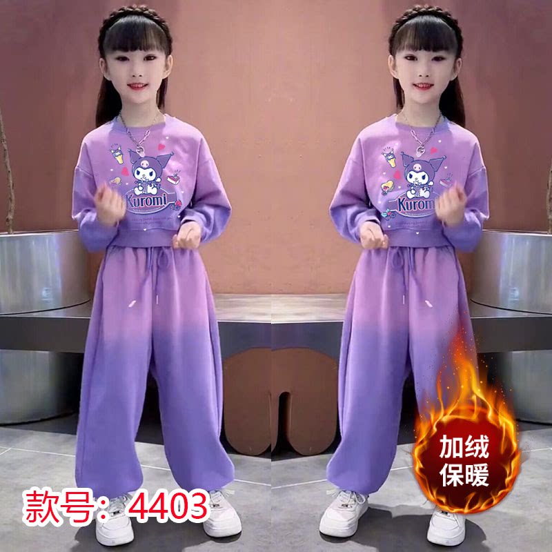 女童渐变卫衣套装2025春秋冬新款洋气运动装儿童网红加绒两件套