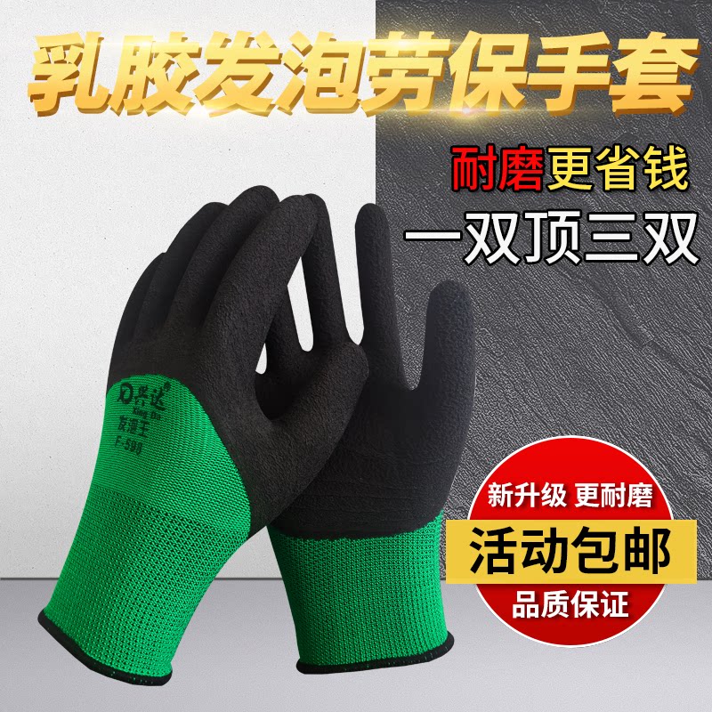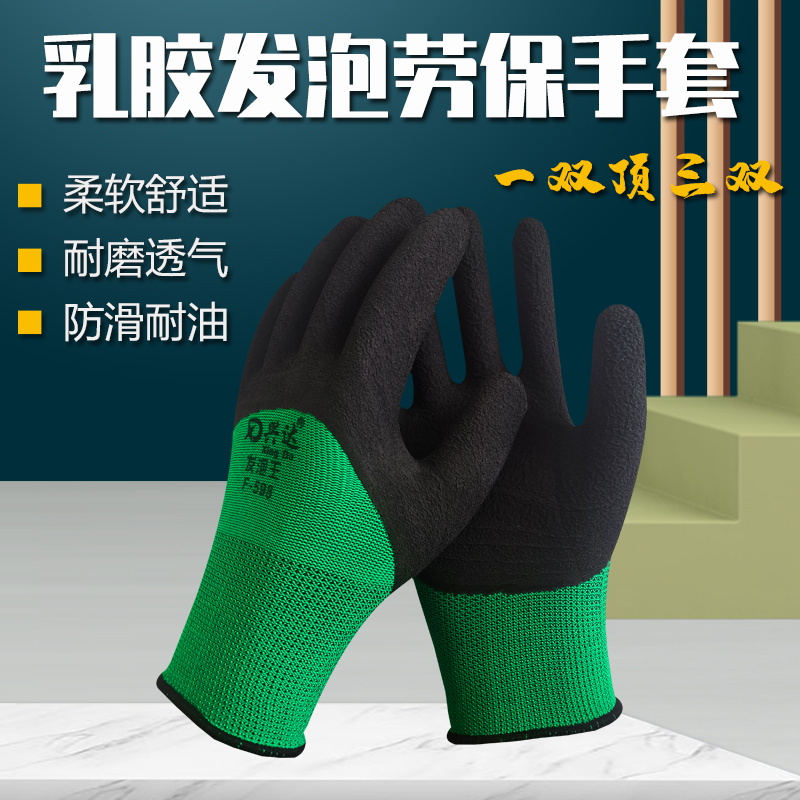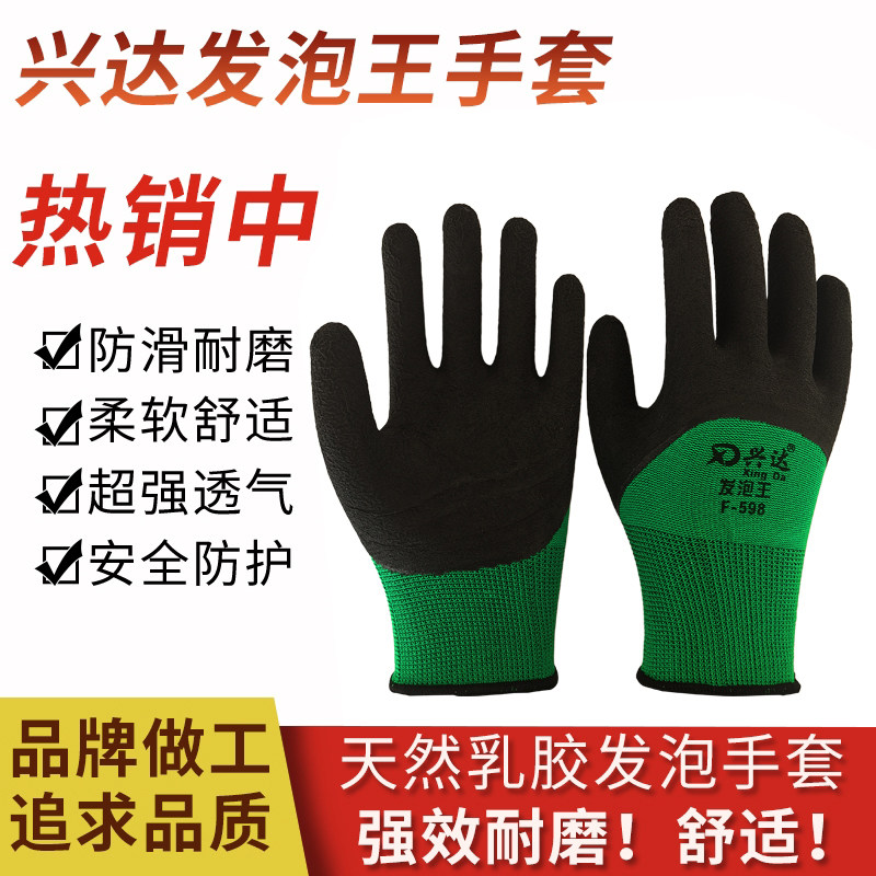 平凡兴达598发泡王手套劳保耐磨工作防水浸胶耐油工地男干活乳胶