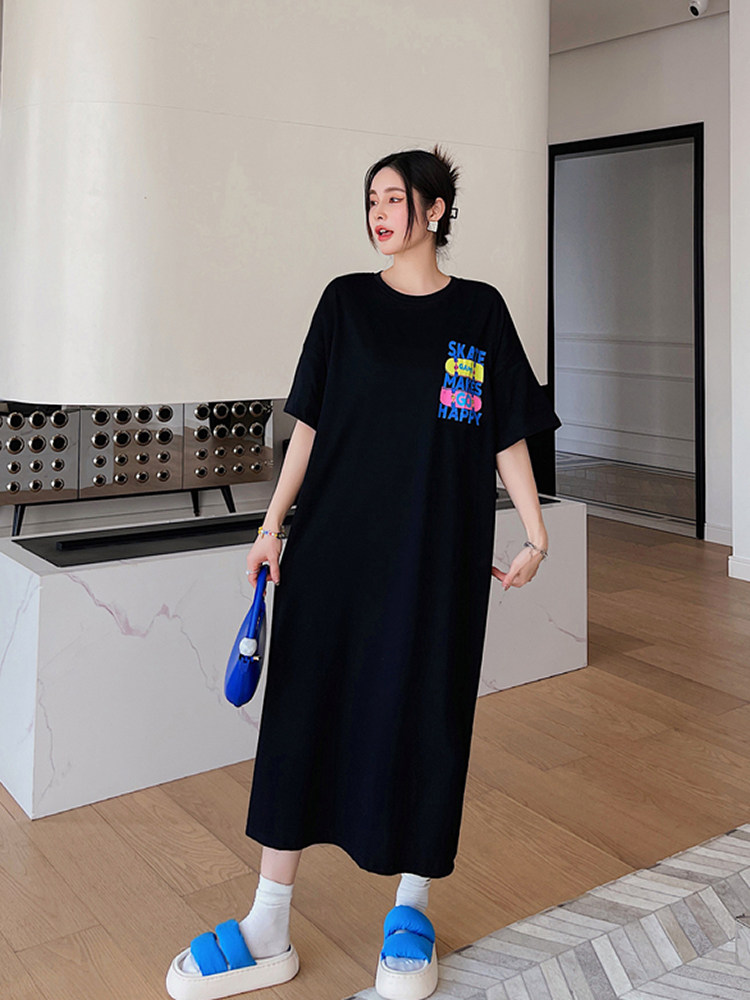 微胖女装显瘦减龄遮肉大码连衣裙夏胖mm2026新款纯棉宽松直筒长裙