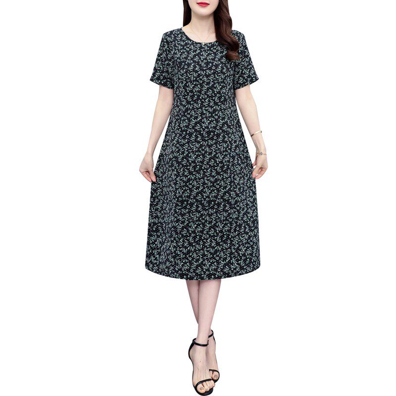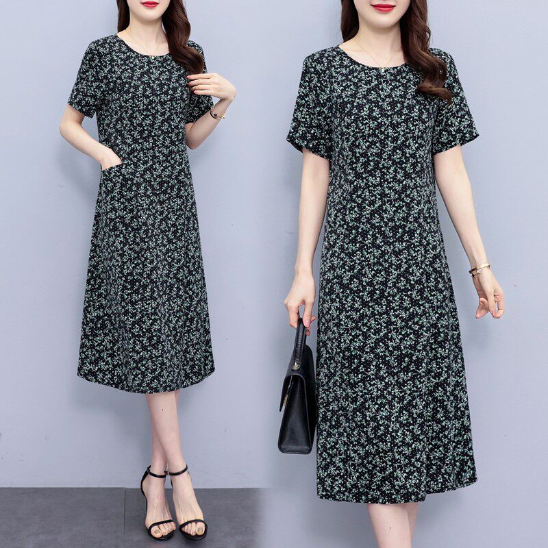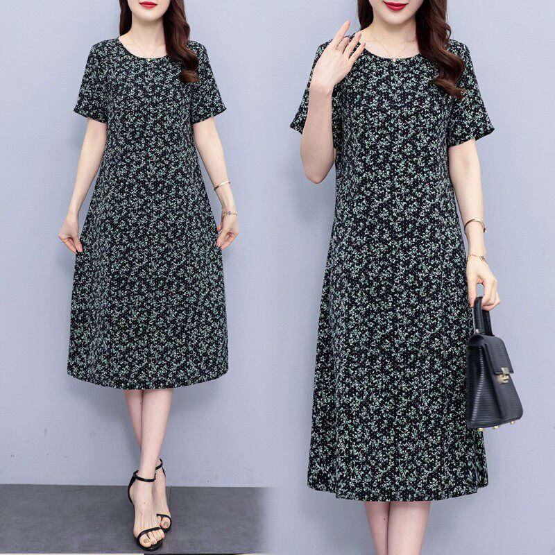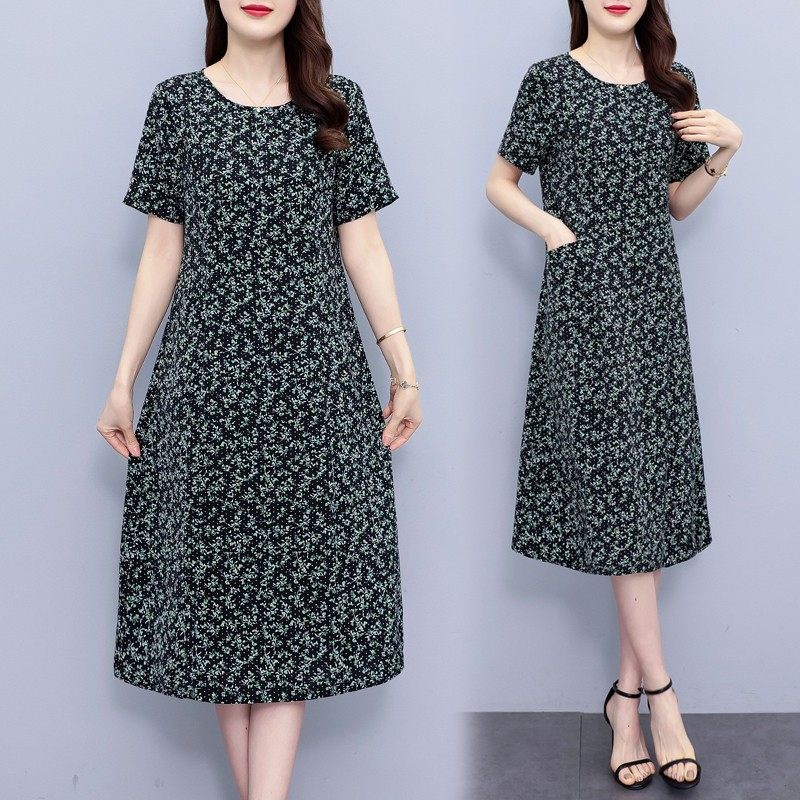 高级感绿色碎花棉连衣裙2026新款中年妈妈女士夏季小个子印花短裙
