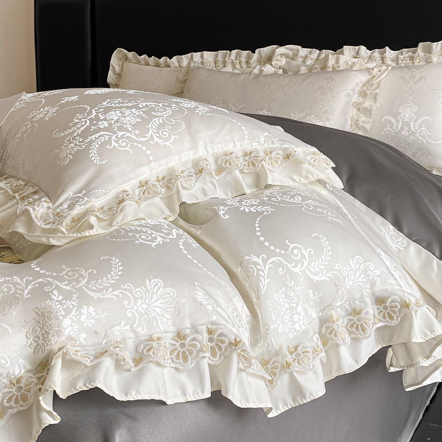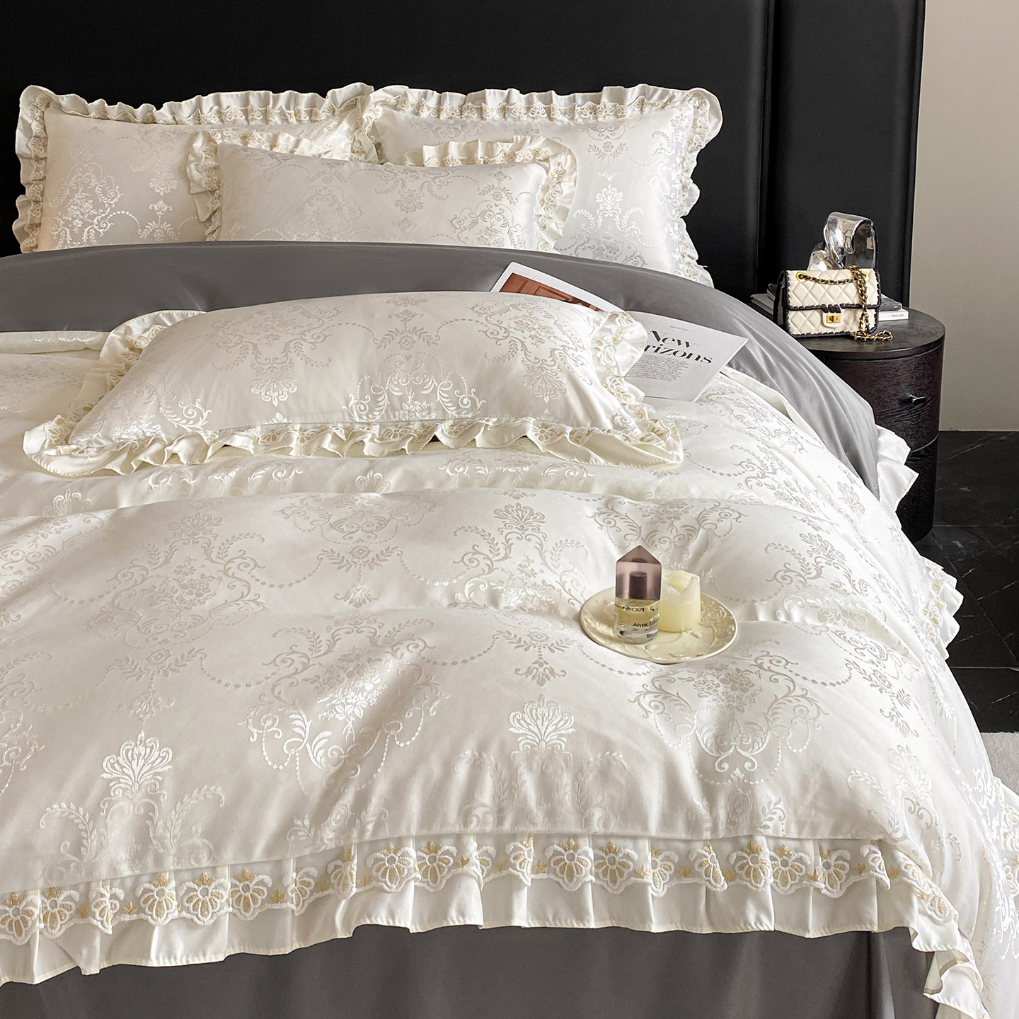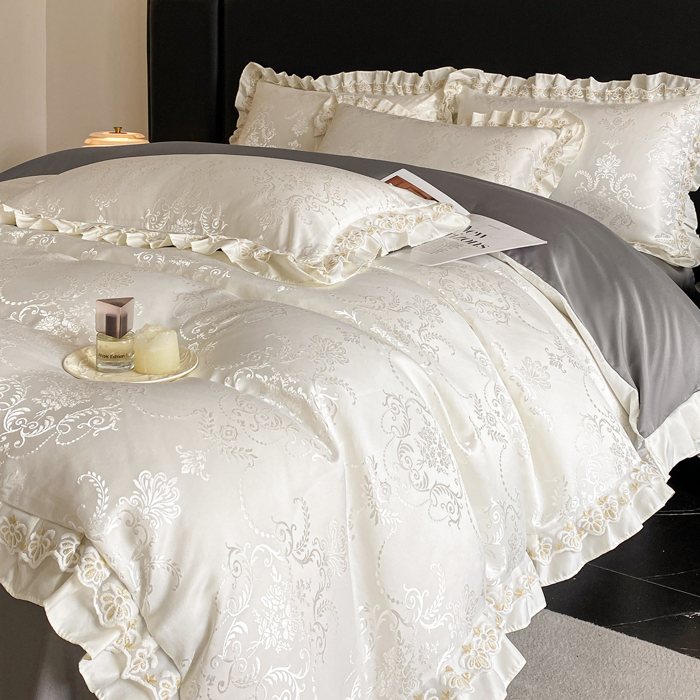 夏季冰丝四件套轻奢公主风天真丝滑裸睡凉感被套床单新款床上用品