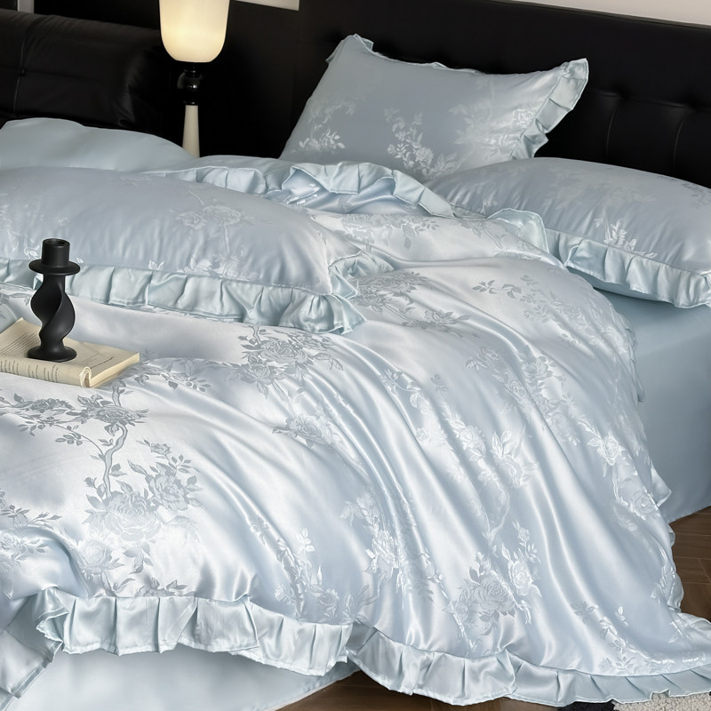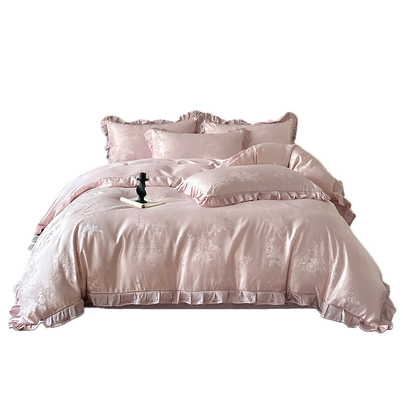 轻奢公主风冰丝四件套少女心真丝滑凉感被套天丝裸睡床单床上用品