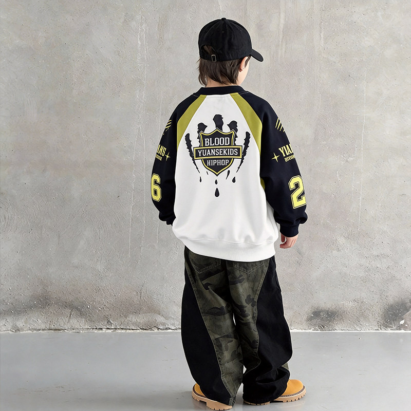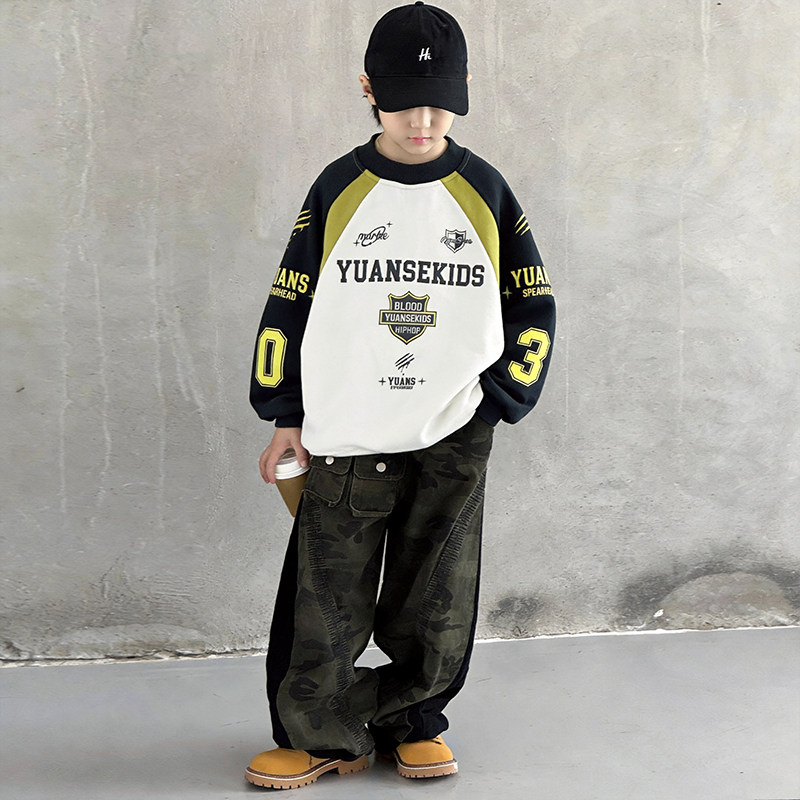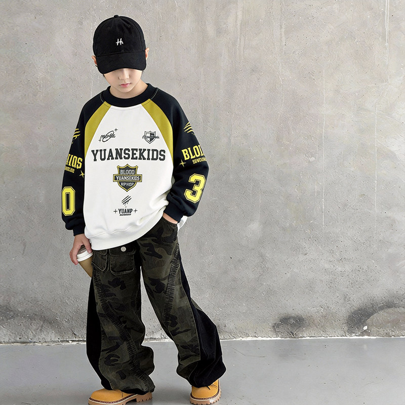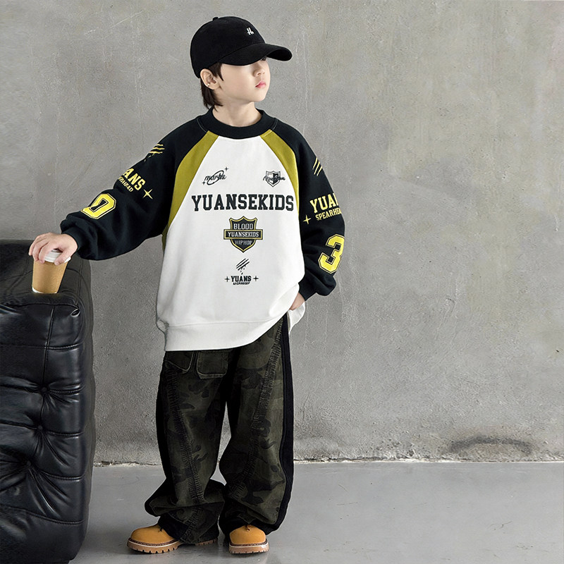 男童卫衣春装2026新款洋气中大童男孩帅气圆领运动打底衫春秋上衣