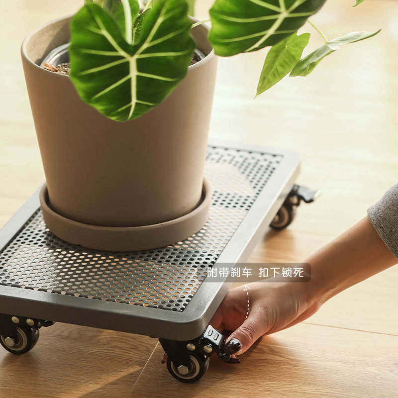 长方形移动花盆托盘铁艺带轮滚轮B万向轮透气加厚大号四方绿植底